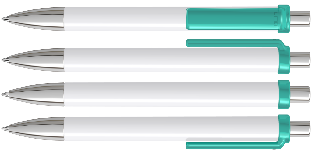 Der klassische und elegante Hardcolor-Semyr-Kugelschreiber mit weißem Schaft und farbigem Oberteil. Der Grip, der Drücker und der Ring im Schaft sind schwarz. Ausgestattet mit einer blau schreibenden Jumbo-Refill-Mine. Der Druckkugelschreiber besteht aus ABS und wird in Europa hergestellt. Ab einer Abnahmemenge von 5.000 Stück sind eigene Farbkombinationen möglich.Mechanismus: DruckmechanismusStandardschreibfarben: blau