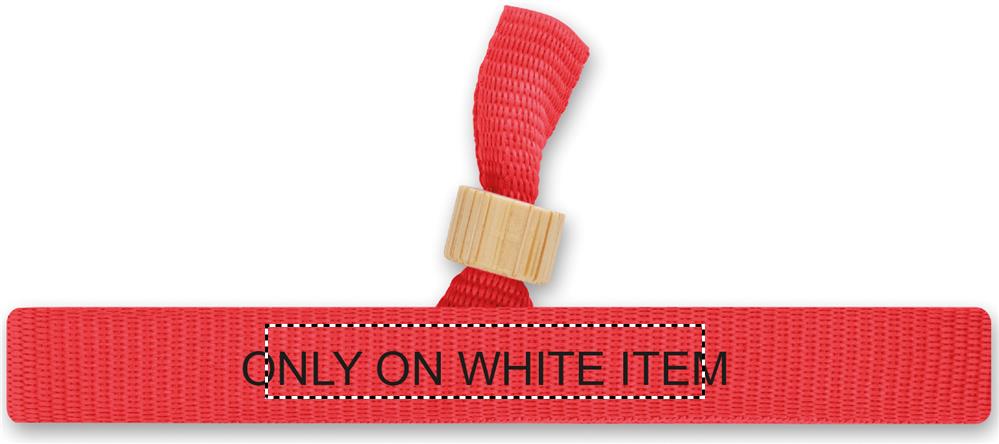 Event-Armband. 300D RPET-Polyester mit Bambusring. Maße: 34 cm x 1,5 cm. Bambus ist ein natürliches Produkt, es kann daher zu leichten Abweichungen in Farbe, Dekor und Maßen kommen.