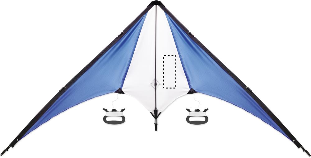 Delta-Kite Lenkdrachen aus 210T Ripstop-Polyester mit 2 Griffen. Lieferung im Beutel.