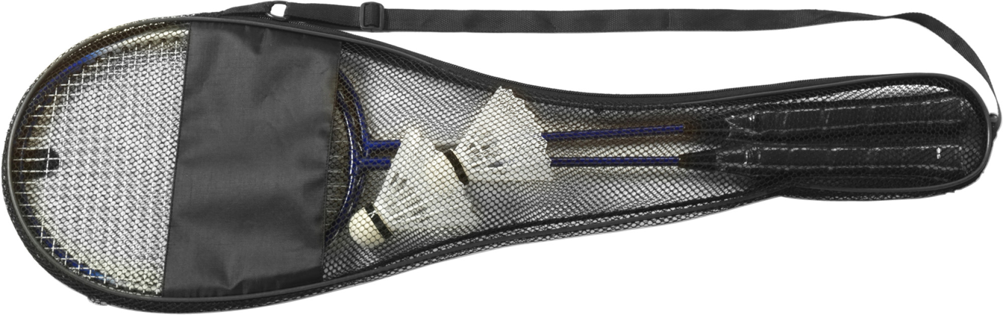 Federballspiel in Umhängetasche mit Griff, bestehend aus 2 Schlägern und 2 Federbällen.