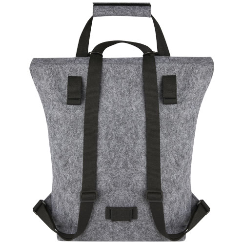 Multifunktionaler und modischer Rolltop-Rucksack und Fahrradtasche in einem. Aus hochwertigem, weichem und strapazierfähigem GRS-zertifiziertem, recyceltem Filz. Ausgestattet mit einem großen Hauptfach, einer Vordertasche, verstellbaren Schultergurten und 3 Klettverschlussgurten, mit denen die Tasche auf dem Gepäckträger eines Fahrrads befestigt werden kann. Die Schultergurte lassen sich leicht in ein langes Tragegriffsystem umwandeln oder so bündeln, dass sich die Gurte nicht in einem Fahrradrad verfangen können.
