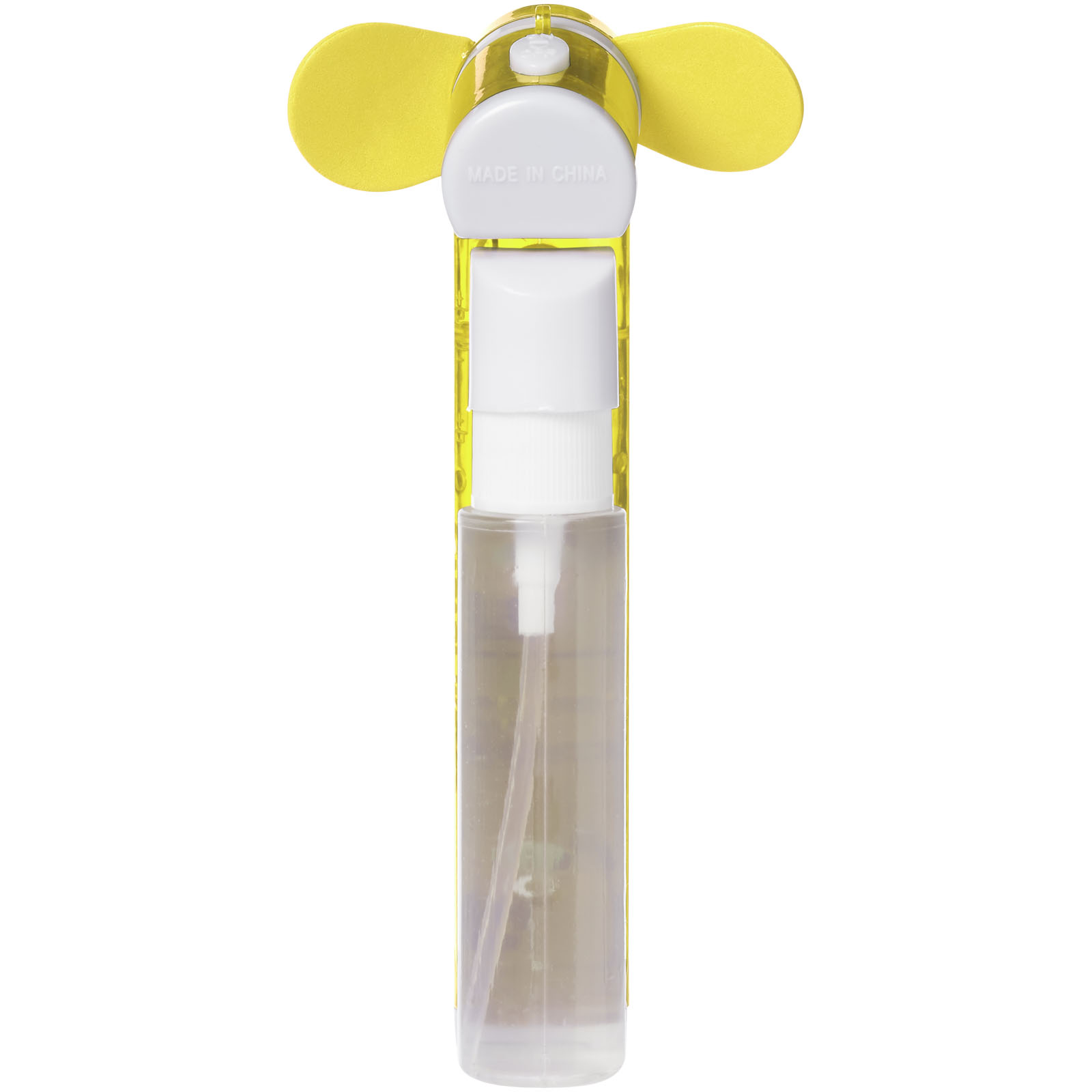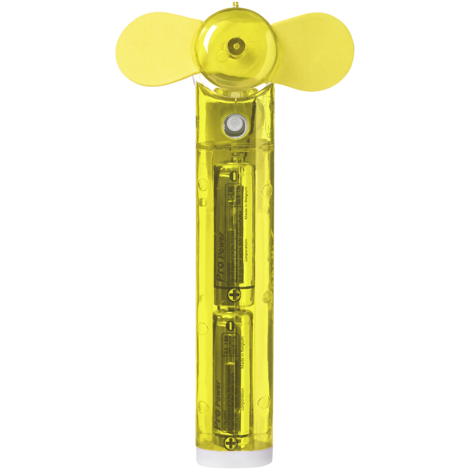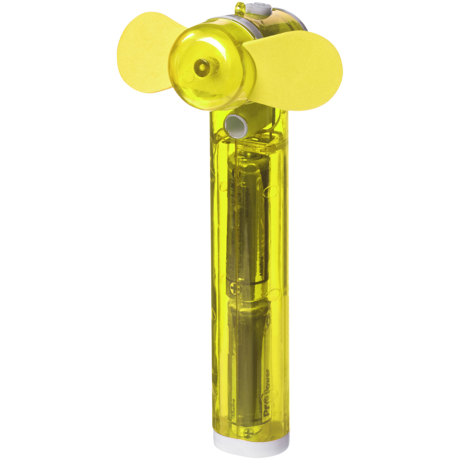 Taschenventilator mit kleinem Wasserbehälter und Spray für zusätzliche Erleichterung von der Hitze. 2x AA Batterien enthalten.