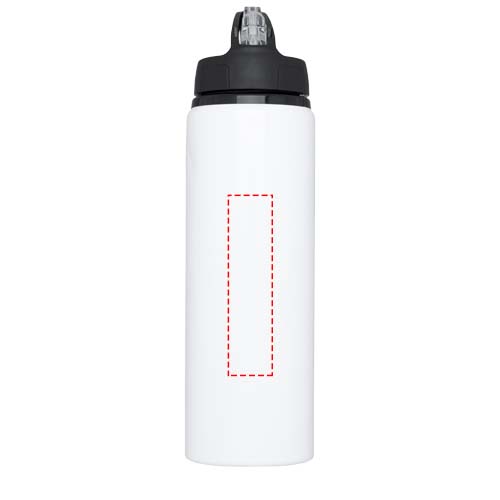Einwandige Flasche aus Aluminium, Schraubdeckel mit Klappdeckel-Trinköffnung. Der Deckel verfügt über einen Griff für einfaches Tragen. BPA-frei. Das Fassungsvermögen beträgt 800 ml.