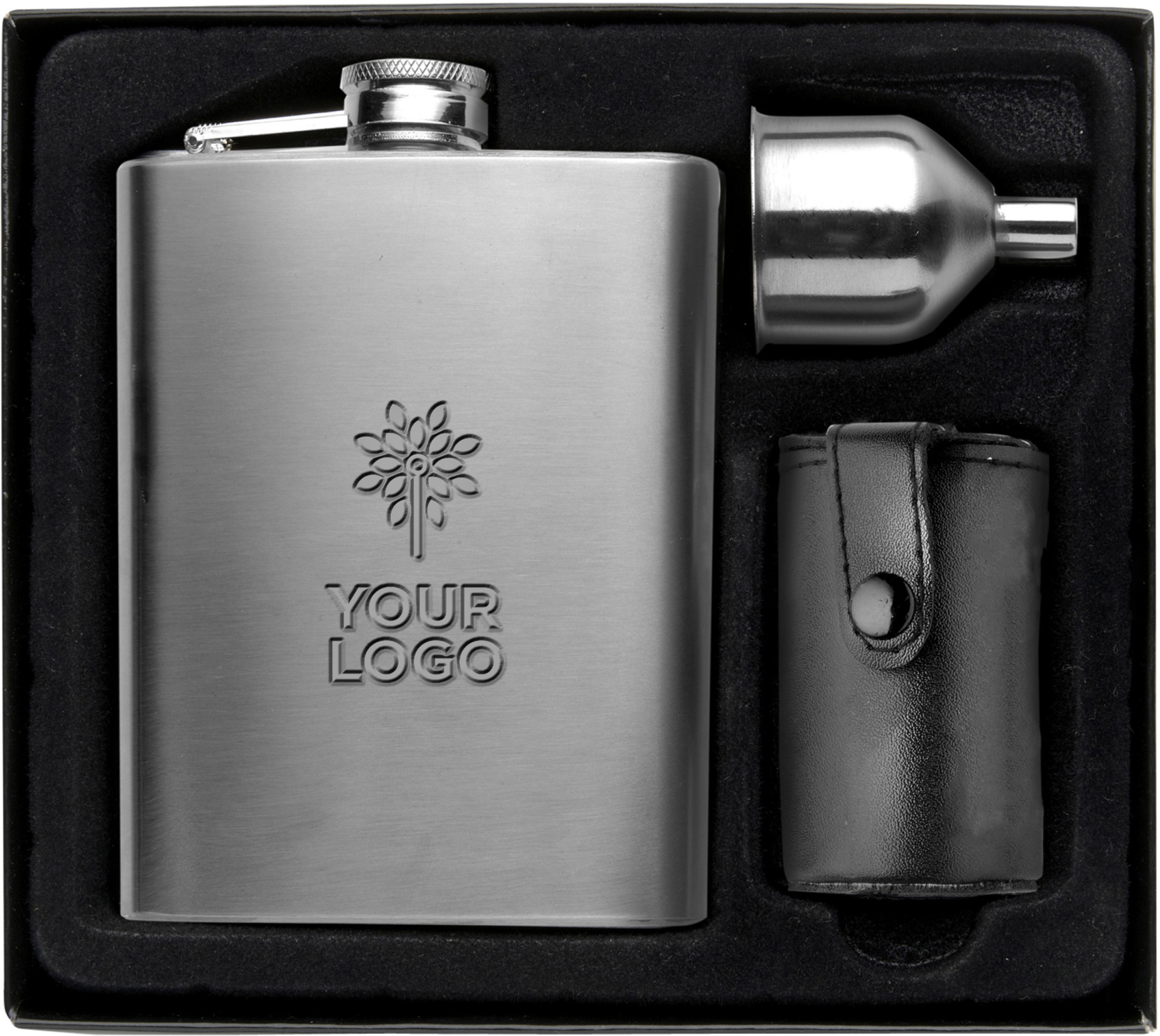 Lorem Ipsum Text6 Gründe dafür, Flachmann Set aus Edelstahl Brittany mit Ihrem Logo bei Promowerk-Werbeartikel.com bedrucken zu lassen.
