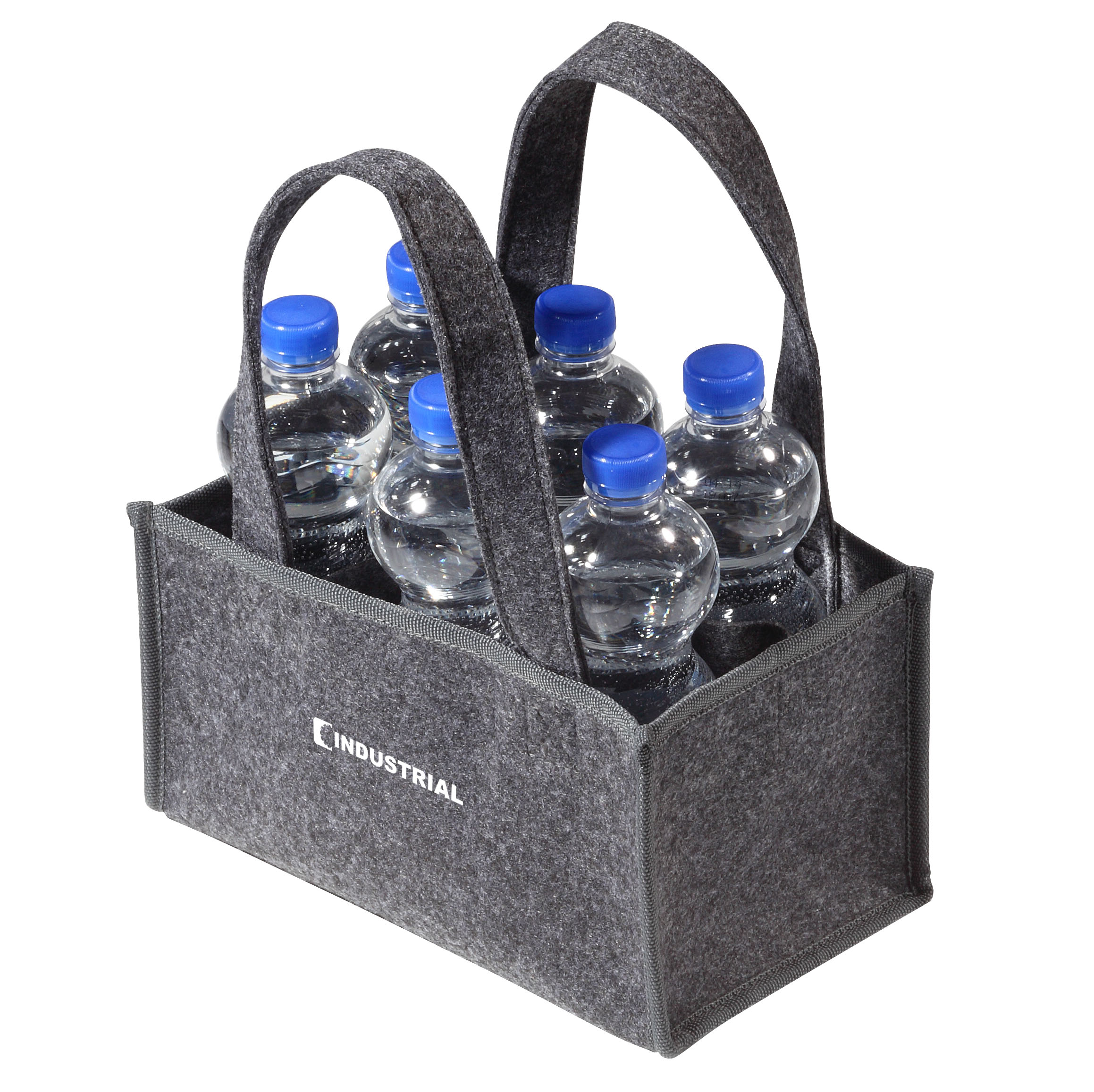 Stabile Getränketasche aus recyceltem Polyesterfilz: Hier lassen sich bis zu 6 Trinkflaschen (jeweils max. 0,70 Liter) sicher verstauen. Die Trennwände verhindern lästiges Klirren und schützen die Getränkeflaschen vor Beschädigung. Inklusive breitem Henkel für einfachen und bequemen Transport.