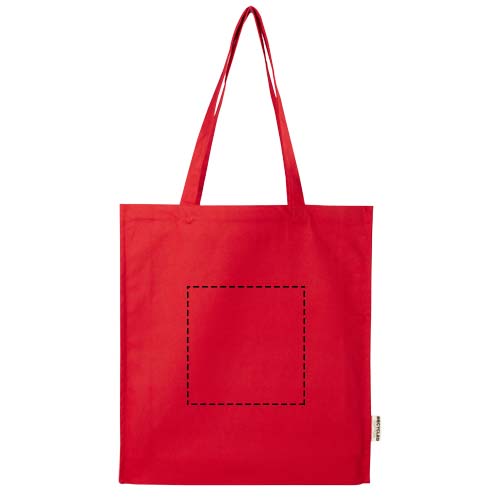 Die Florida Tragetasche mit Seitenfalten wird aus 100 % GRS-zertifizierter, Recyclingbaumwolle mit einem Gewicht von 270 g/m² hergestellt und ist eine verantwortungsbewusste und nachhaltige Wahl für den täglichen Bedarf. Mit einem Fassungsvermögen von bis zu 14 Litern und 30 cm langen Griffen ist sie ideal für den mühelosen Transport von Lebensmitteln, Büchern oder Alltagsgegenständen.