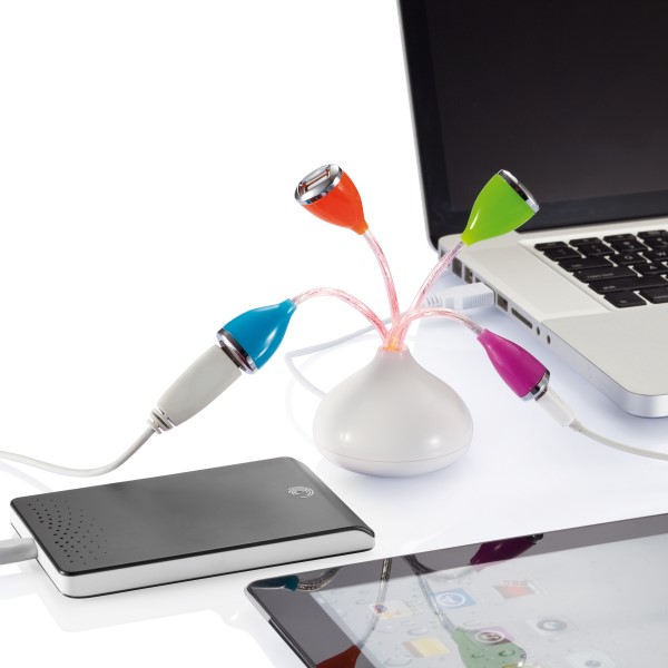 6 Gründe dafür, Flower 4-Port USB Hub mit LED mit Ihrem Logo bei Promowerk-Werbeartikel.com bedrucken zu lassen.