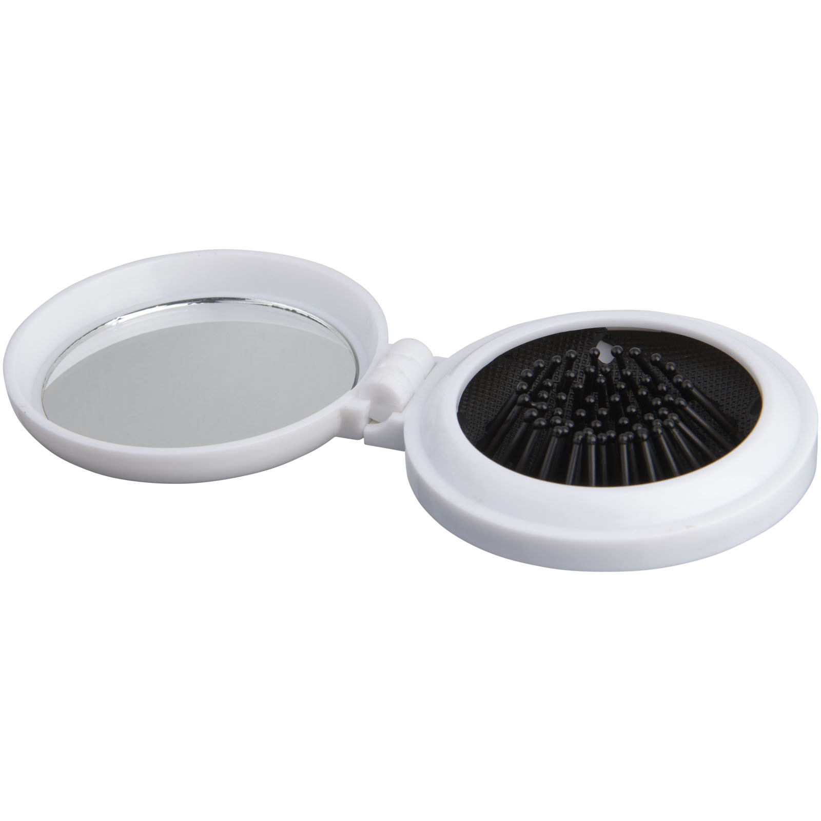 Faltbare Bürste mit Spiegel im Kunststoff Gehäuse.
