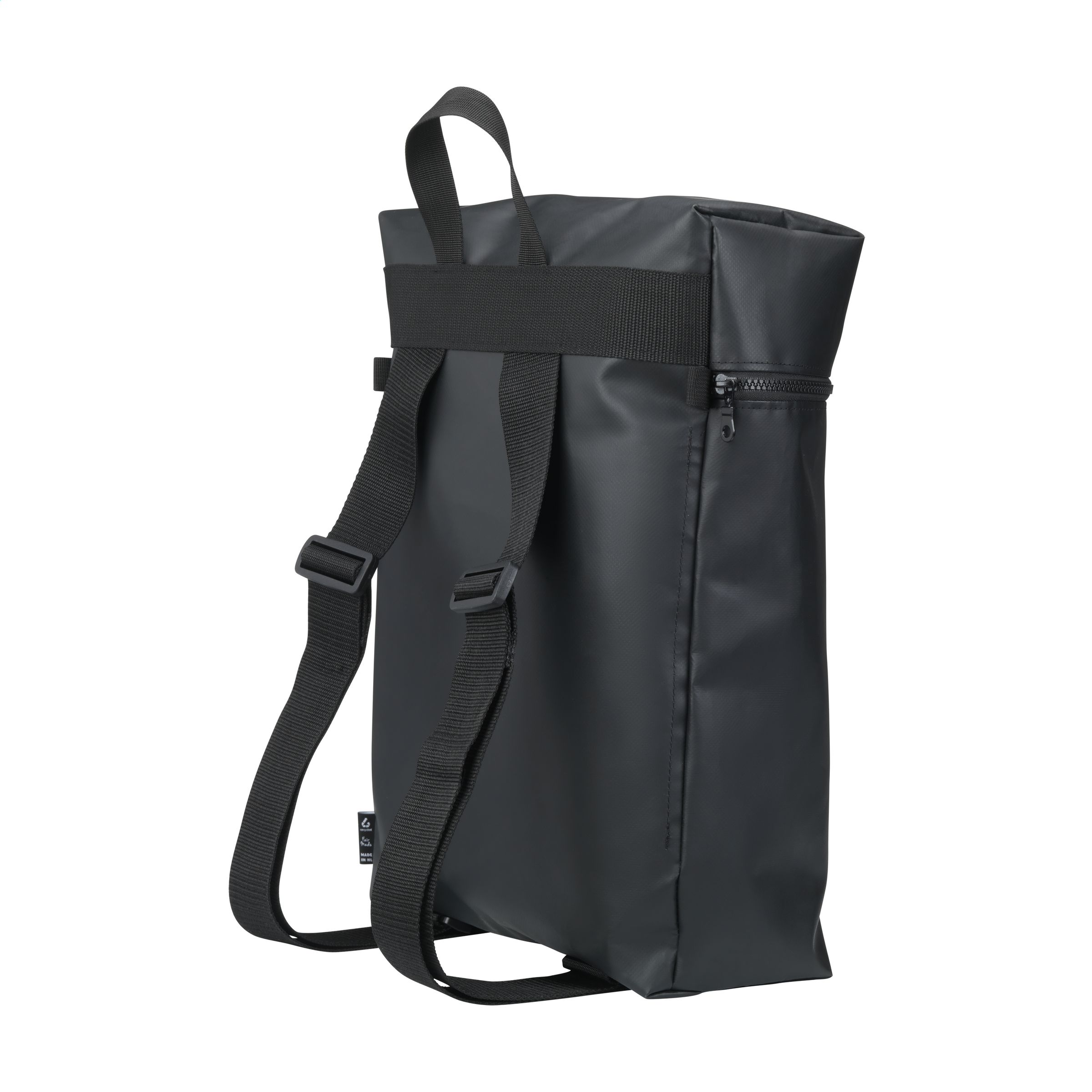 Robuster Rucksack der Marke Fraenck aus upgecyceltem Segeltuch. Das robuste und wasserabweisende Material stammt aus upgecycelten Stoffresten der Segelindustrie. Der Rollverschluss hat einen Reißverschluss, kann aufgerollt und mit einem Karabiner gesichert werden. Mit verstellbaren Schulterriemen und einer Trageschlaufe. Ein zeitloses Design. Fassungsvermögen ca. 16 Liter. Made in Holland.