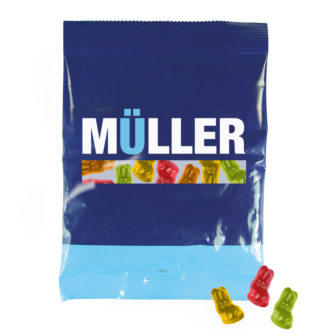 Produkt: Tüte aus transparenter Folie, individuell bedruckt br>Inhalt: Fruchtgummi der Marke Trolli, Premium-Qualität, 10 % Fruchtanteil, bunt gemischt, ca. 50 g br>Fruchtgummi-Sonderformen auf Anfrage br>Haltbarkeit: 12 Monate br>Preise: € / Tüte inkl. 4-c Flexodruck zzgl. Drucknebenkosten