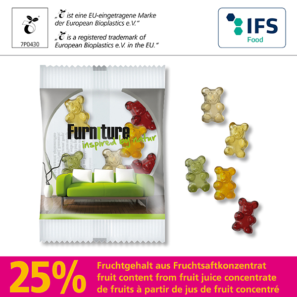 Fruchtsaft-Bärchen in kompostierbarem Werbetütchen Art.-Nr.: 22876-006