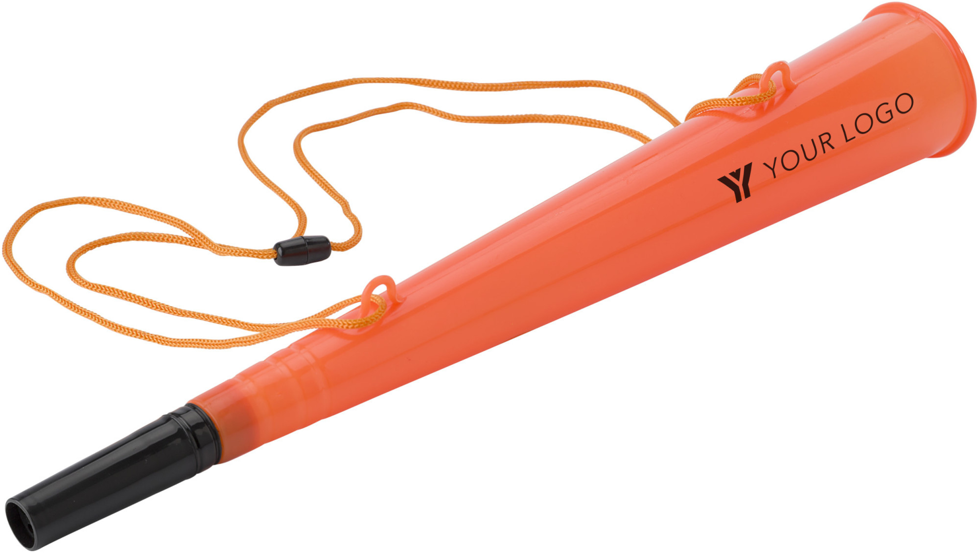Fussball-Horn aus Kunststoff, inkl. Kordel und Sicherheitsverschluss. Länge der Kordel: ca. 100 cm.