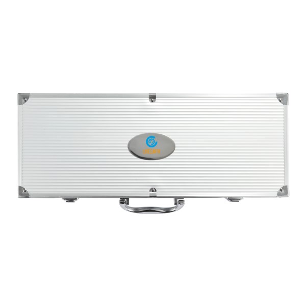 12tlg. Edelstahl Grillset, inkl. 4 Spießen, Messer, 4 Maiskolbenhalter, Bratenheber, Grillzange und -gabel mit Schutzhülle, Set konfektioniert in Aluminiumkoffer.