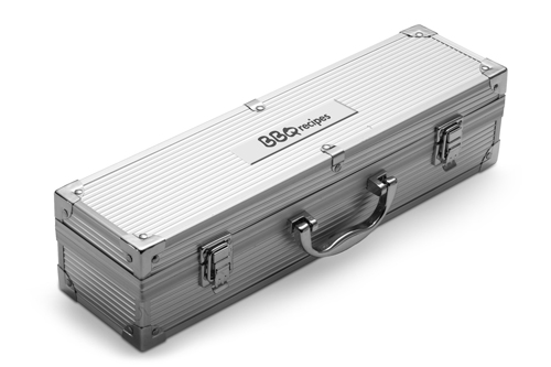 Grillset aus Metall im Aluminiumkoffer, 3-tlg. bestehend aus Zange, Wender und Fleischgabel.
