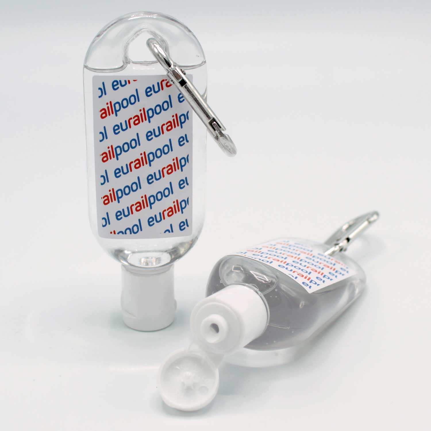 Durch das individuelle 4c bedruckte Etikett bekommt jedes Fläschchen eine Werbebotschaft mit auf den Weg. Ein tolles Give-away für mehr Sicherheit und Hygiene für unterwegs.