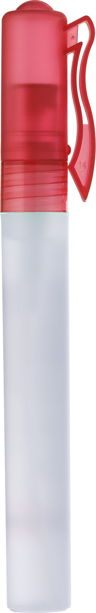 Handspray in transparenter Kunststoff-Röhre mit farbigem Deckel, Inhalt ca. 10 ml.