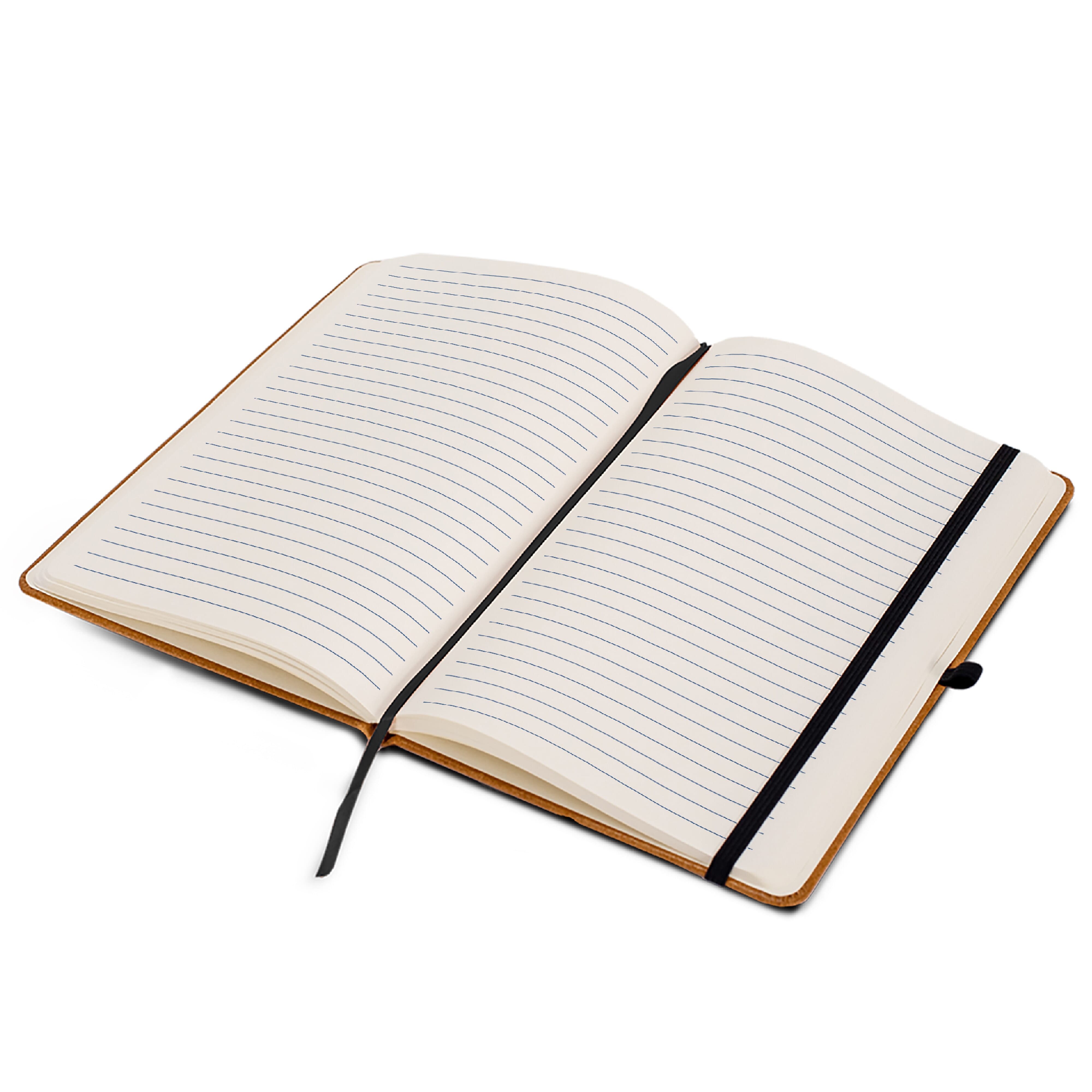 Praktisches Notizbuch im A5-Format. Mit festem PU-Überzug, ca. 80 Seiten cremefarbenem, liniertem FSC Mix zertifiziertes Papier (70 g/m²), elastischem Verschluss und Leseband.