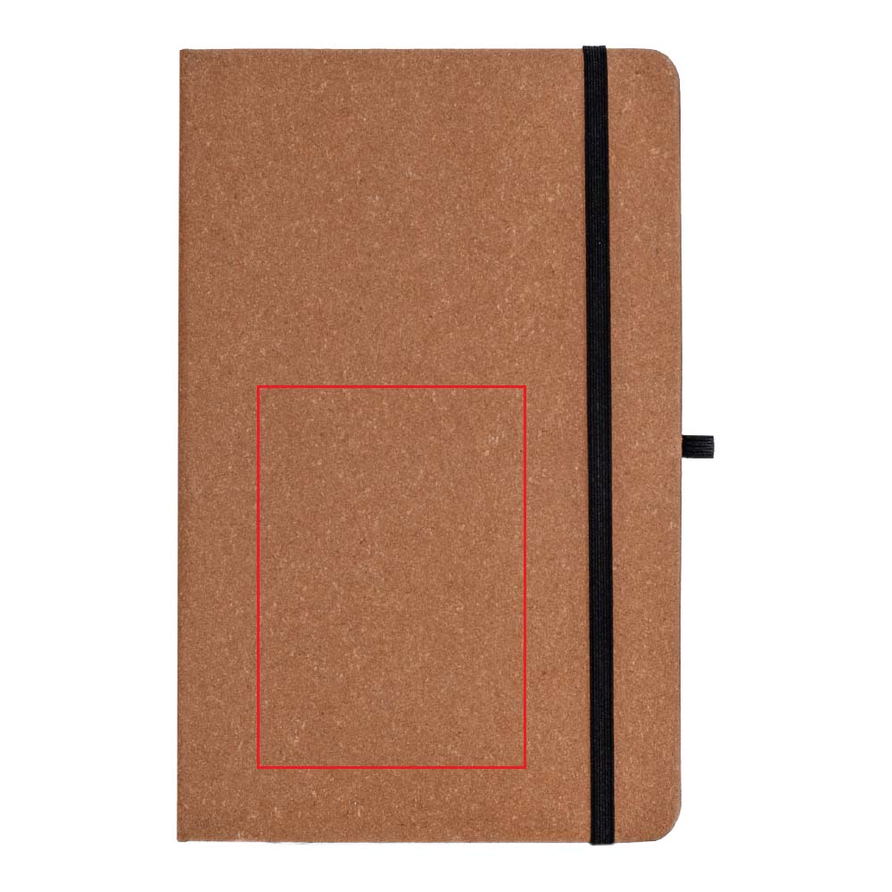 DIN A5 Notizbuch mit Hardcover aus 70% recyceltem Pre-Consumer-Leder und 30% PU-Latex. 96 Blatt (192 Seiten) liniertes Recyclingpapier. Mit farblich passendem elastischen Baumwoll Verschlussband und Stiftschlaufe.