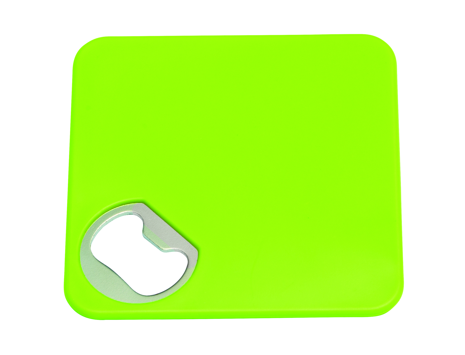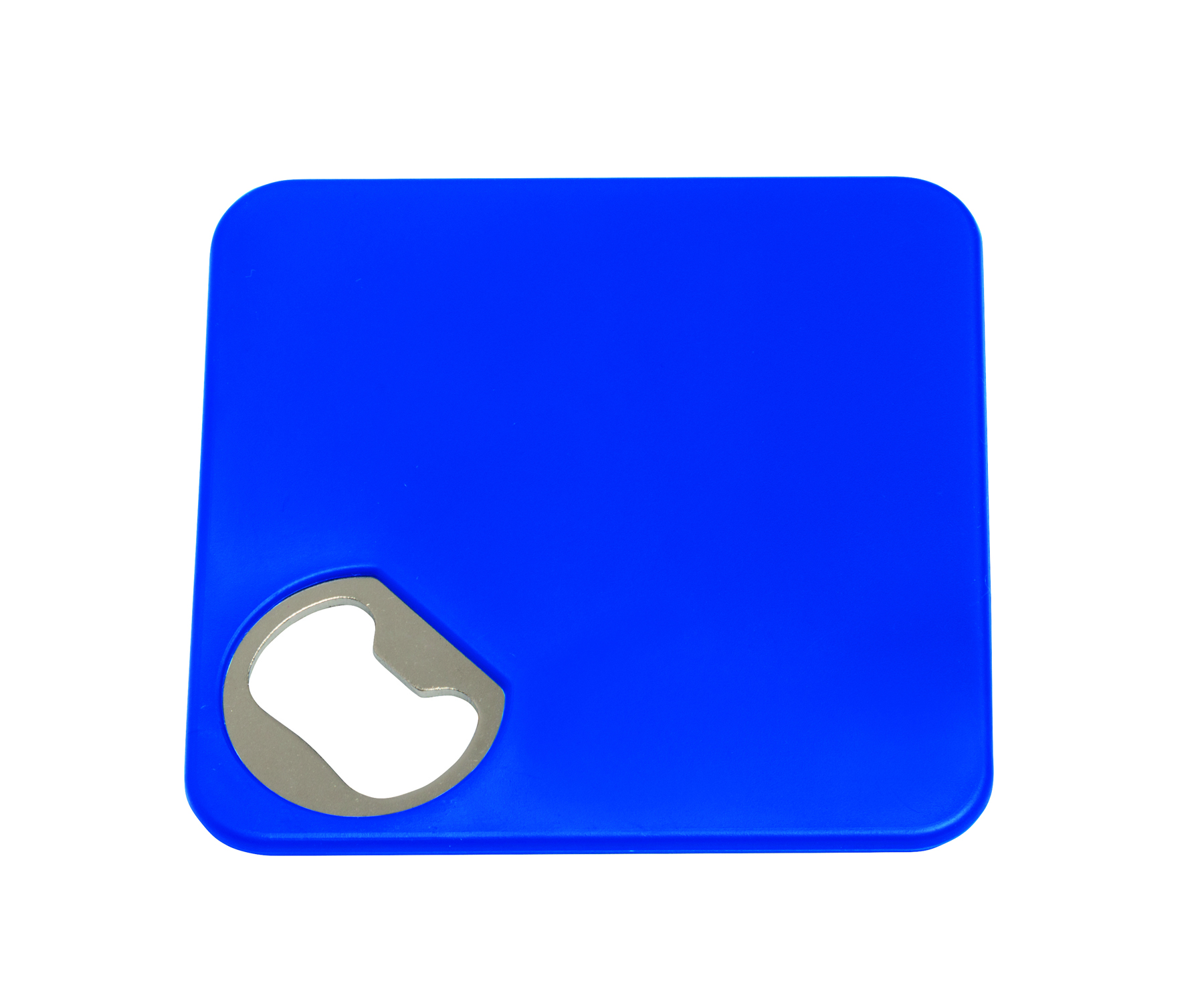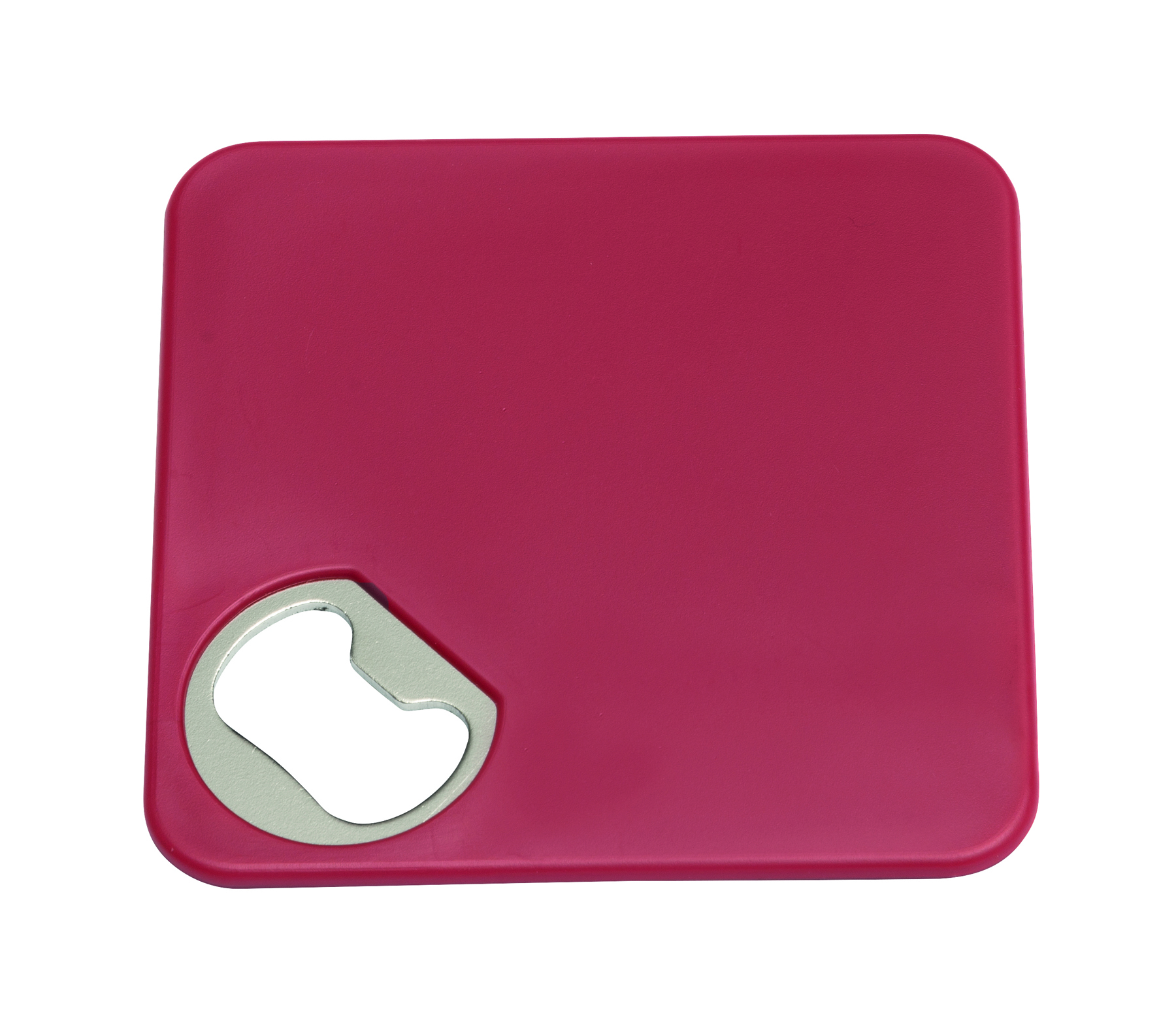 Aus eins mach zwei - Der Untersetzer mit Flaschenöffner hat eine rutschfeste Unterseite und bietet zudem jede Menge Platz für Ihre Werbung!Kunststoff, Metall, weiß, Flaschenöffner, Polybeutel.