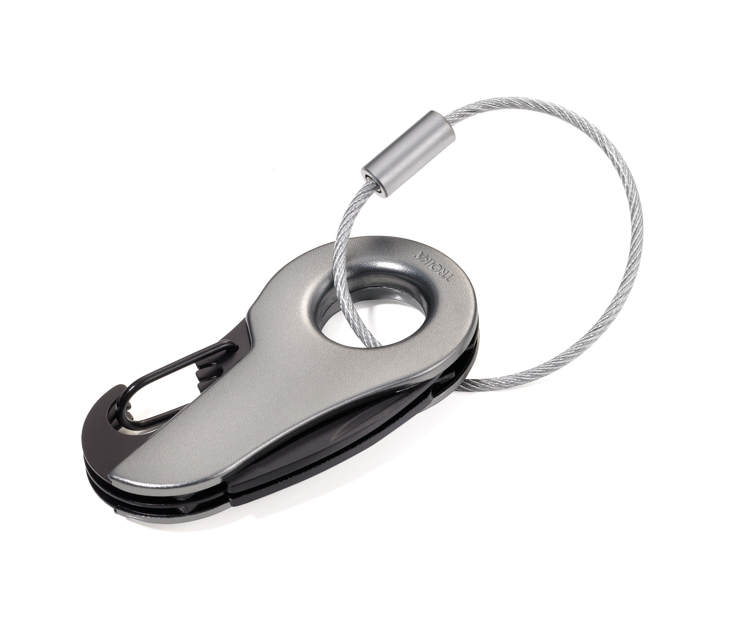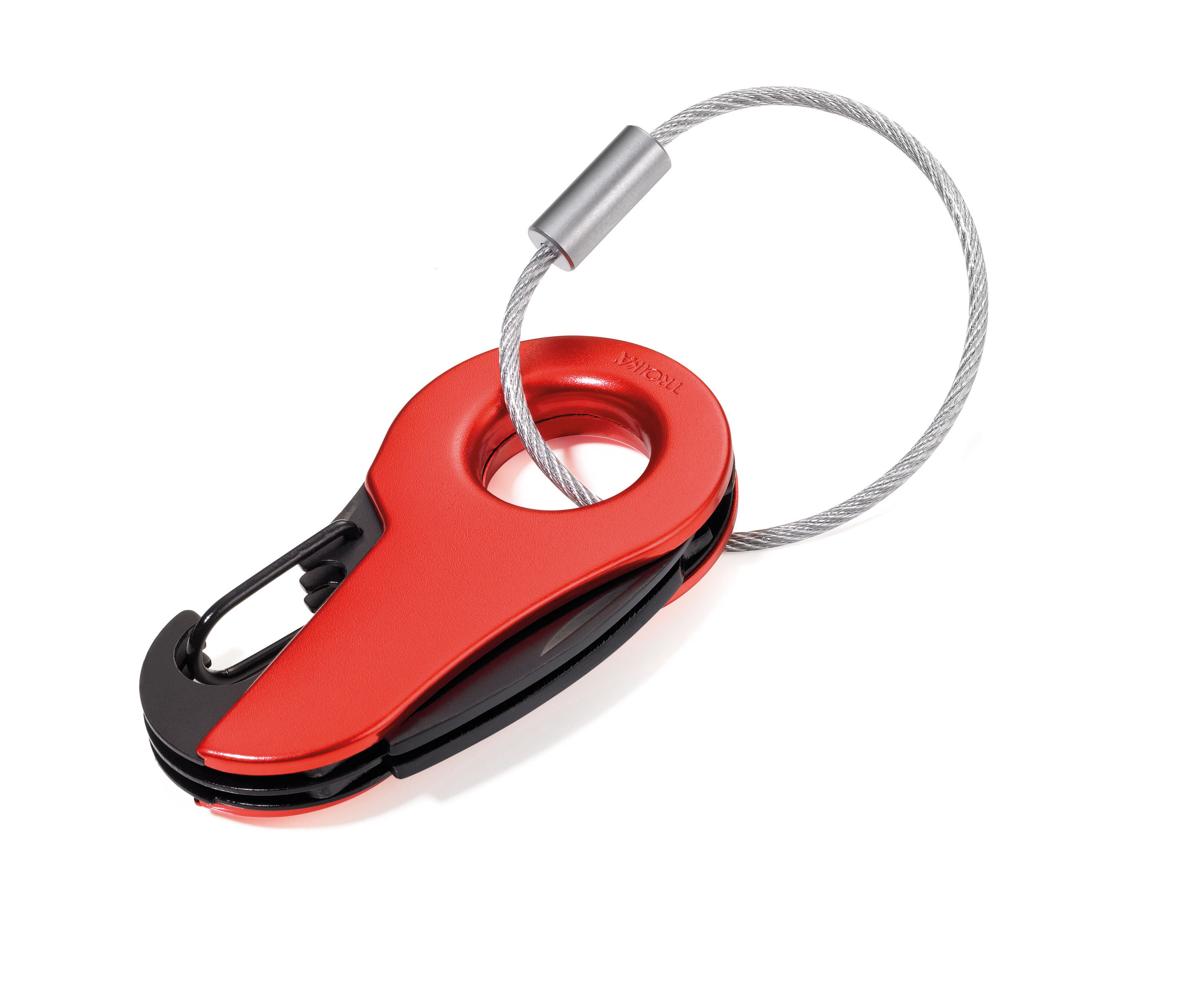 Mini-Werkzeug mit 10 Funktionen, Messer, Schlüsselanhänger (Drahtschlaufe mit Karabiner), Flaschenöffner, 3 Schraubendreher (2 Kreuz-, 1 Schlitz-), Sechkantschlüssel (4 Größen), kleines Stemmeisen, Lineal (5 cm), Nippelspanner (Speichenwerkzeug), Edelstahl/Aluminium, eloxiertschwarz/titanfarben Es gibt eine Welt jenseits von WLAN und Smartphone. Sie ist analog, und mit Apps kommt man hier nicht weiter. Weil es um schrauben, schneiden, drehen und messen geht. Seien Sie also vorbereitet, wenn der Alltag zur Wildnis wird. Mit dem Schlüsselanhänger TOOLINATOR gehen Sie Ihren Weg, indoor und outdoor. Zehn Funktionen vom Messer über das kleine Stemmeisen bis zu Speichenwerkzeug. Aus Edelstahl und eloxiertem Aluminium in Titan Farbe und Rot.