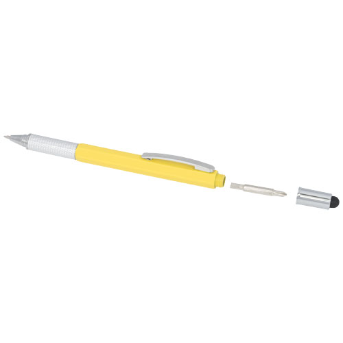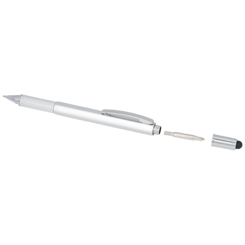 Kylo Stift-Multiwerkzeug. Kugelschreiber mit Drehmechanismus mit Wasserwaage und Lineal (metrisch und imperial) und Styluskappe zum Abdecken eines zweiseitigen Schraubendreher-Bits und magnetischem Bithalter. ABS Kunststoff.