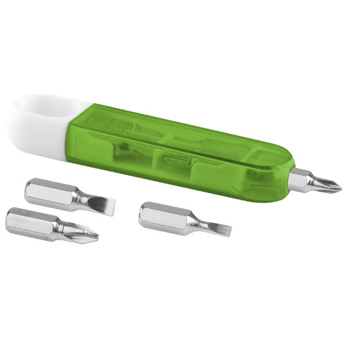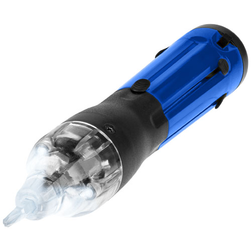 Forza Schraubendreherset mit 4 Funktionen. Fach zum Herausschieben enthält jeweils Schlitz-Schraubbits und Kreuzschlitz-Schraubbits in 2 Größen. Magnetische Basis hält die Bits für die Verwendung bereit. ABS- und AS Kunststoff.