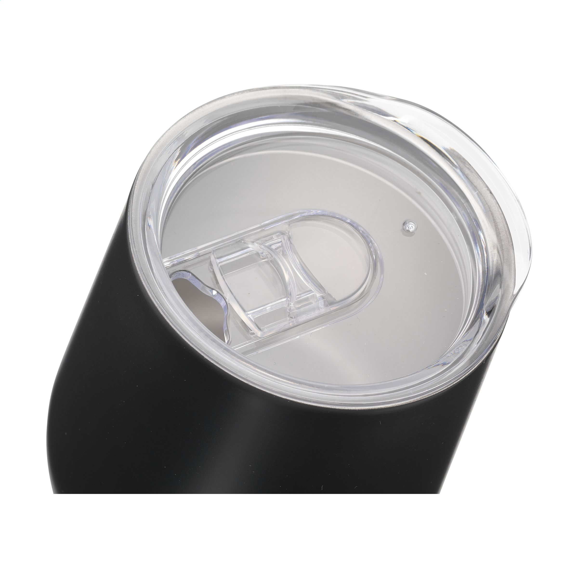 WoW! Doppelwandiger Trinkbecher. Die Innen- und Außenwände sind aus recyceltem Edelstahl gefertigt. Dadurch bleiben heiße Getränke länger auf der richtigen Temperatur. Durch sein besonders schönes Design und die attraktive matte Oberfläche fällt der Becher sofort auf. Der transparente Aufsteckdeckel aus Kunststoff ist mit einer verschließbaren Trinköffnung versehen. Fassungsvermögen 350 ml. RCS-zertifiziert. Gesamtes recyceltes Material: 83%. Wird einzeln in einem Kraftkarton geliefert.