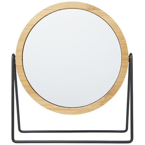 Um 360 Grad drehbarer Spiegel zum Aufstellen auf dem Waschtisch oder der Arbeitsplatte. Der Spiegel ist aus Bambus hergestellt, der nach nachhaltigen Normen bezogen und produziert wird.