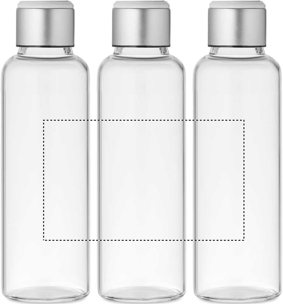 Trinkflasche aus Borosilikatglas mit Trink-Erinnerung. Das Sensorlicht leuchtet stündlich auf und erinnert Sie daran etwas zu trinken. Mit Schutzhülle. Inkl. 1 CR2032-Batterie. Füllmenge: 500 ml.