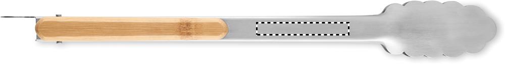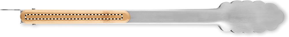 Grillzange aus Edelstahl mit Griffen aus Bambus. Verriegelungsmechanismus. Bambus ist ein natürliches Produkt, es kann daher zu leichten Abweichungen in Farbe, Dekor und Maßen kommen.