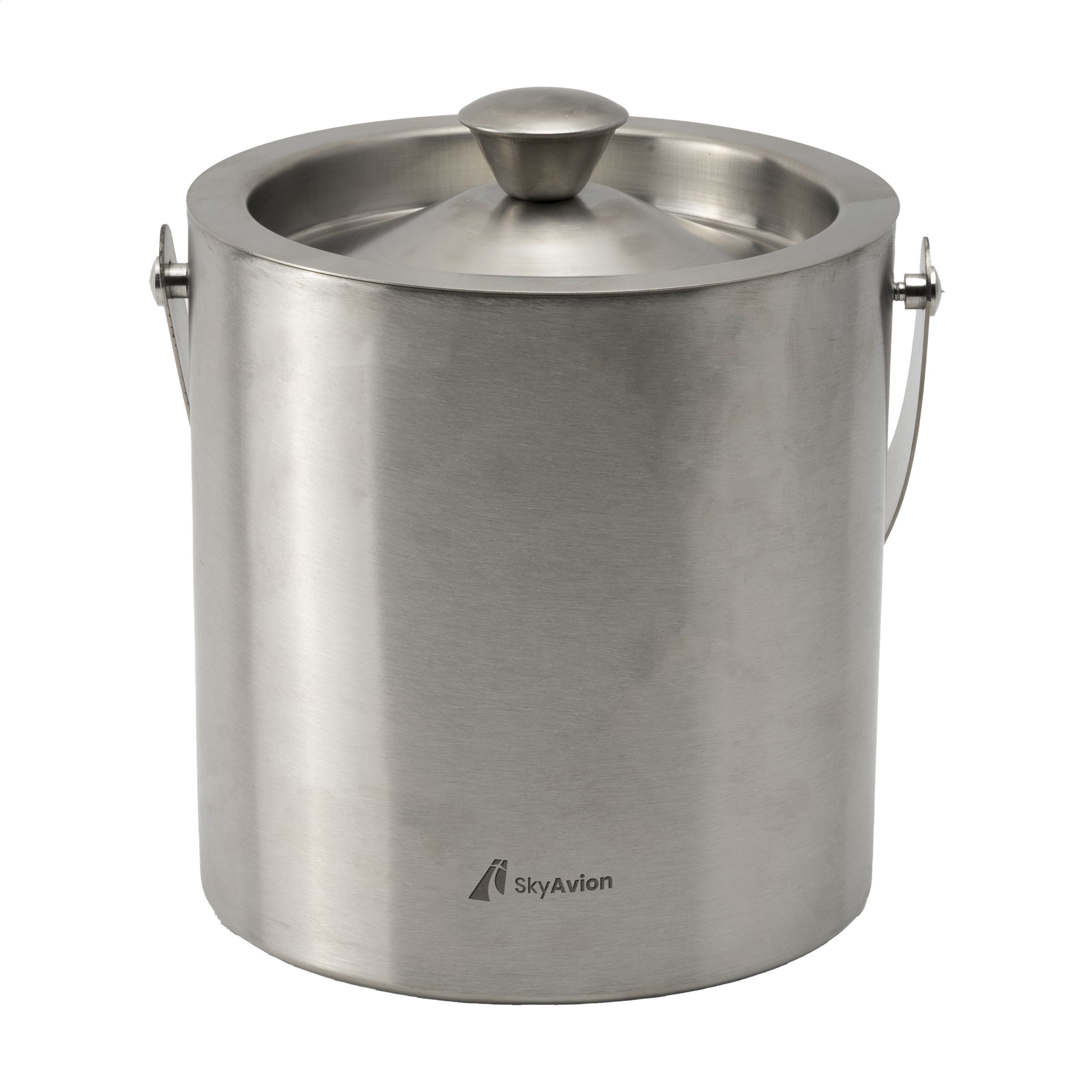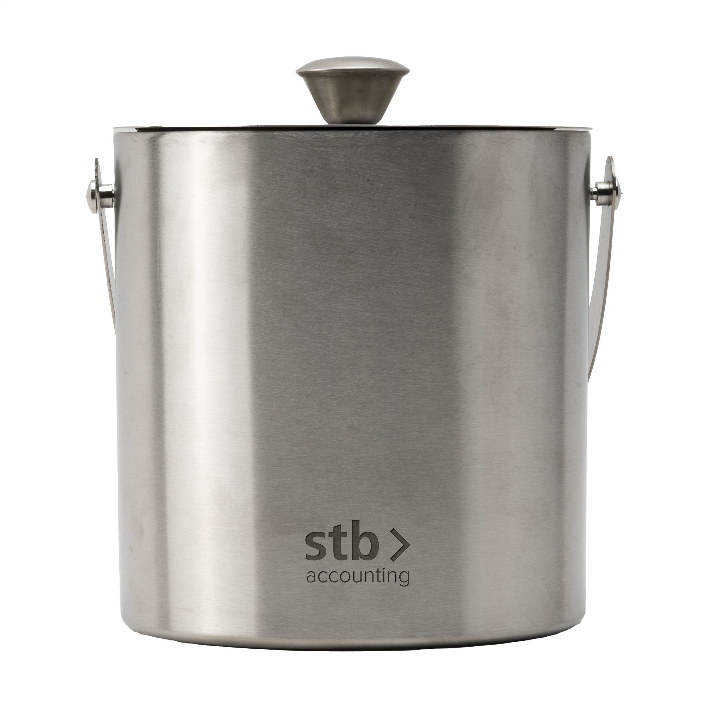 Doppelwandiger, luxuriöser Eiskübel aus Edelstahl mit Deckel und Griff. Zur kühlen Aufbewahrung von Eiswürfeln, Crunched Ice oder Getränken. Inklusive Eiszange. Fassungsvermögen 2 Liter. Pro Set in einer Verpackung.