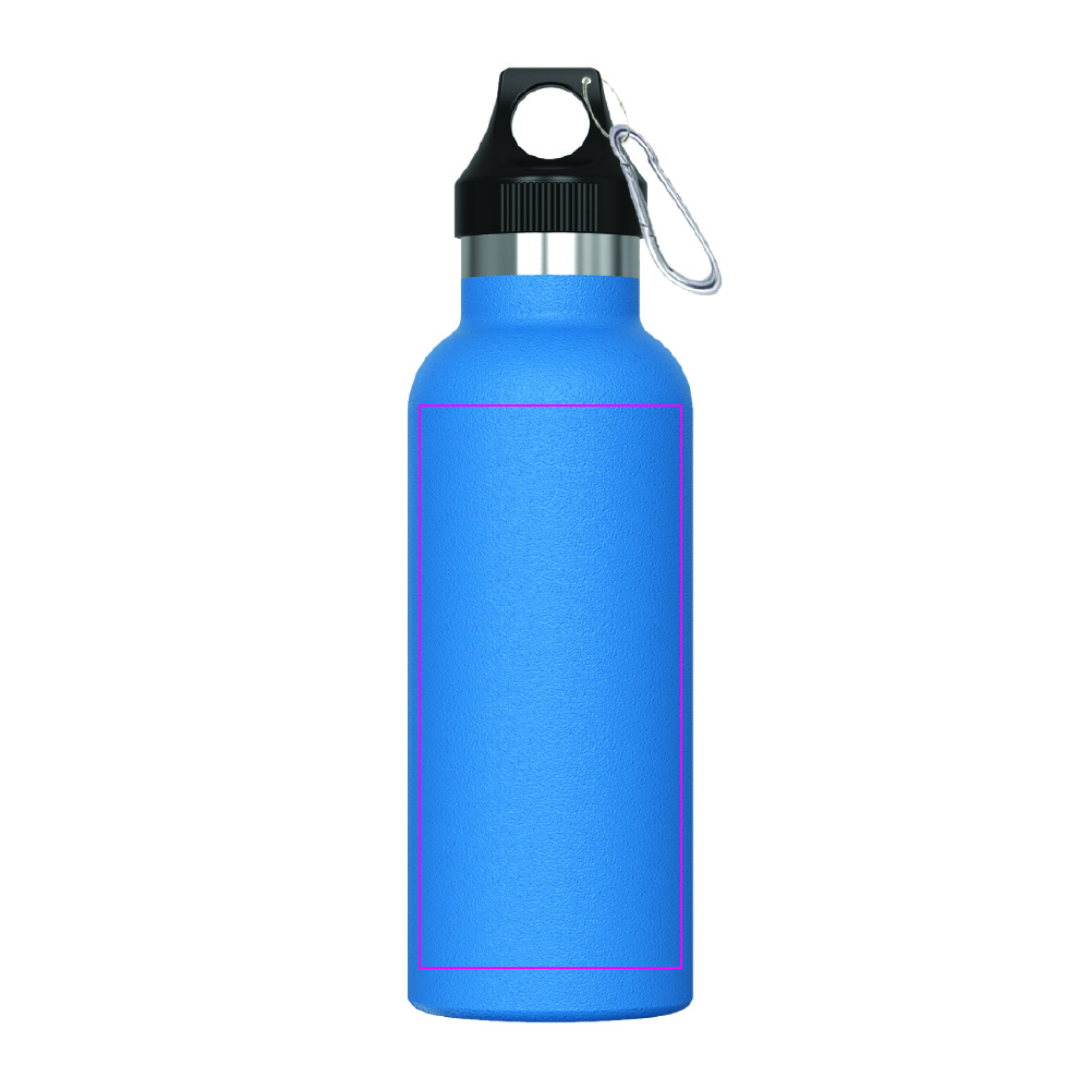 Doppelwandige vakuumisolierte Trinkflasche. Die 100% auslaufsichere Flasche wird in einer Geschenkverpackung geliefert. Die Vakuumisolation hält die Getränke länger auf der richtigen Temperatur, bis zu 12 Stunden warm und/oder bis zu 24 Stunden kalt. Die Pulverbeschichtung der Aussenwände verleiht der Flasche ein elegantes Aussehen.