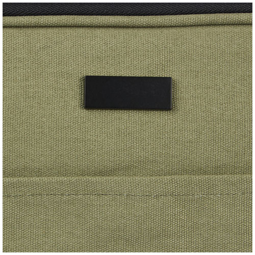 Die Joey 14" Laptophülle besteht aus GRS recyceltem Canvas und GRS RPET-Futter, und verfügt über ein geschütztes Laptopfach und eine offene Vordertasche mit Klettverschluss. Die dekorative Metallplatte kann ein Logo durch ihre dezente und matte Oberfläche zum Leuchten bringen.