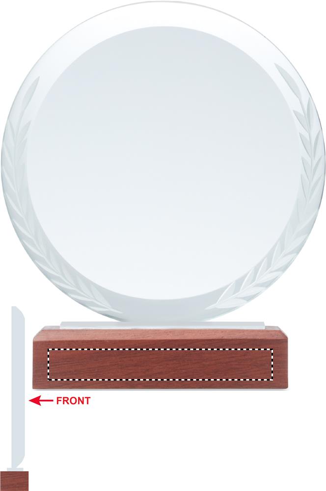 Runder Pokal/Ehrentafel aus Kristallglas mit einem Sockel aus Buchenholz. Lieferung in einer Geschenkschachtel.