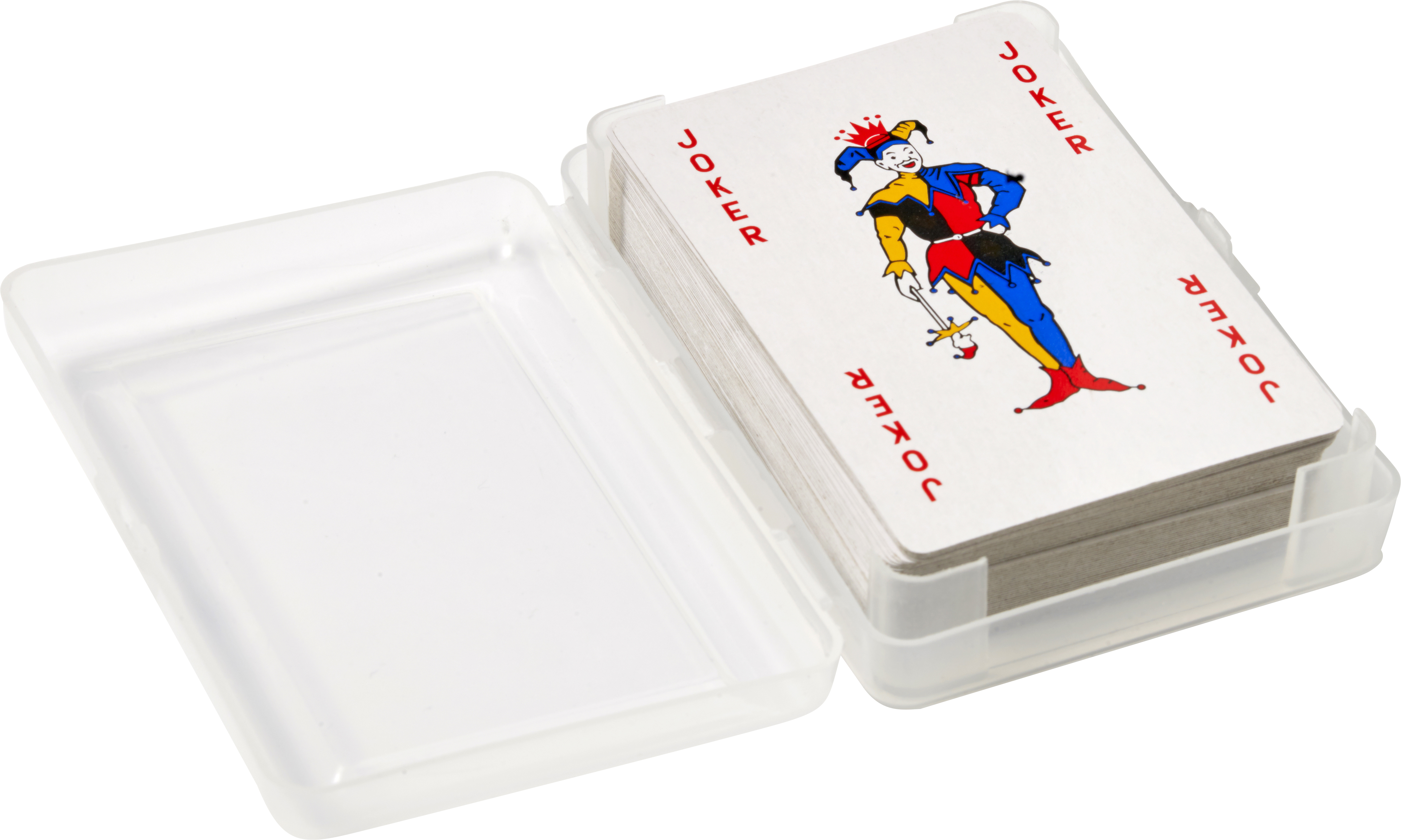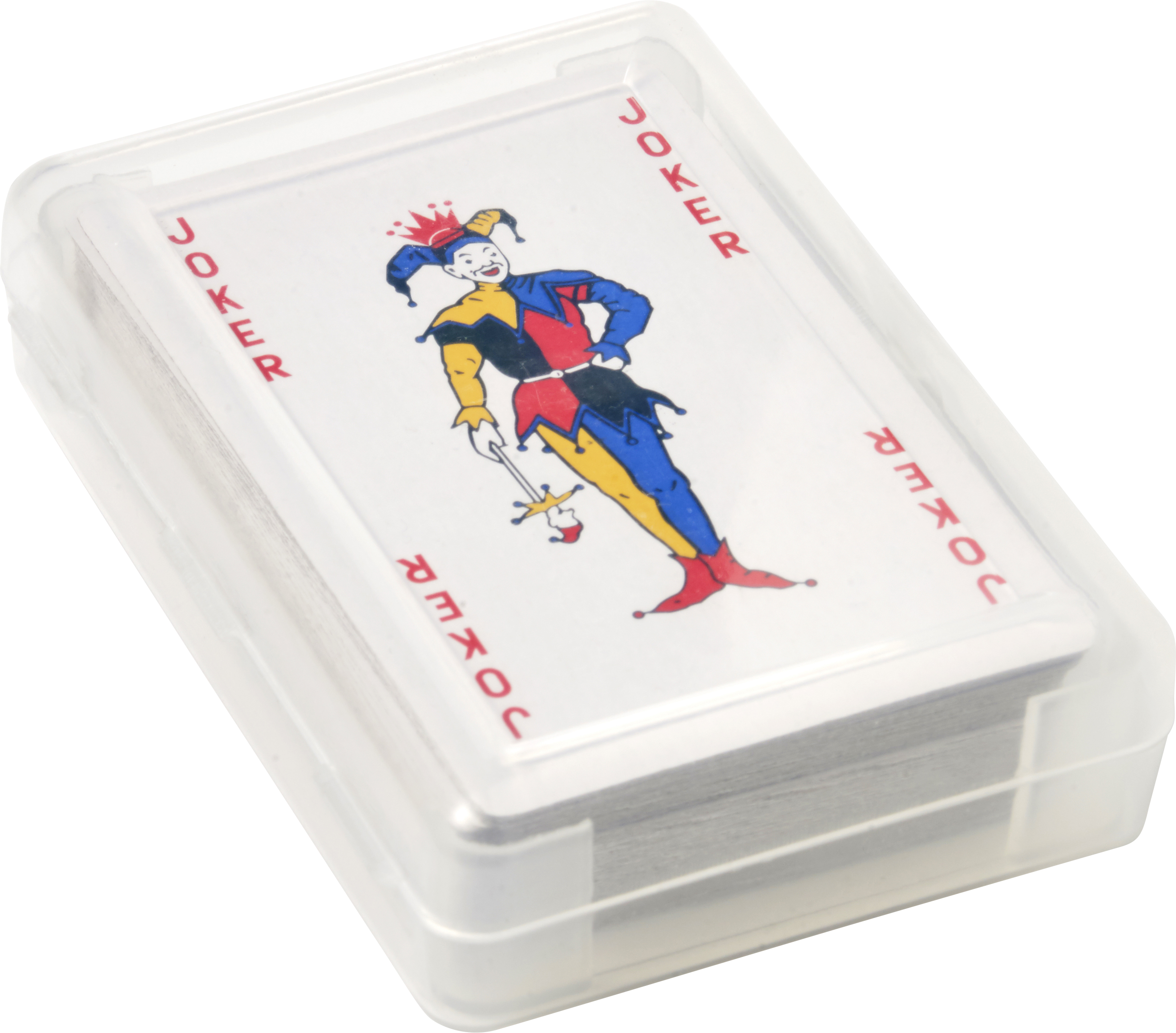 Klassisches Kartenspiel in transparenter PET Box, 54 Karten.