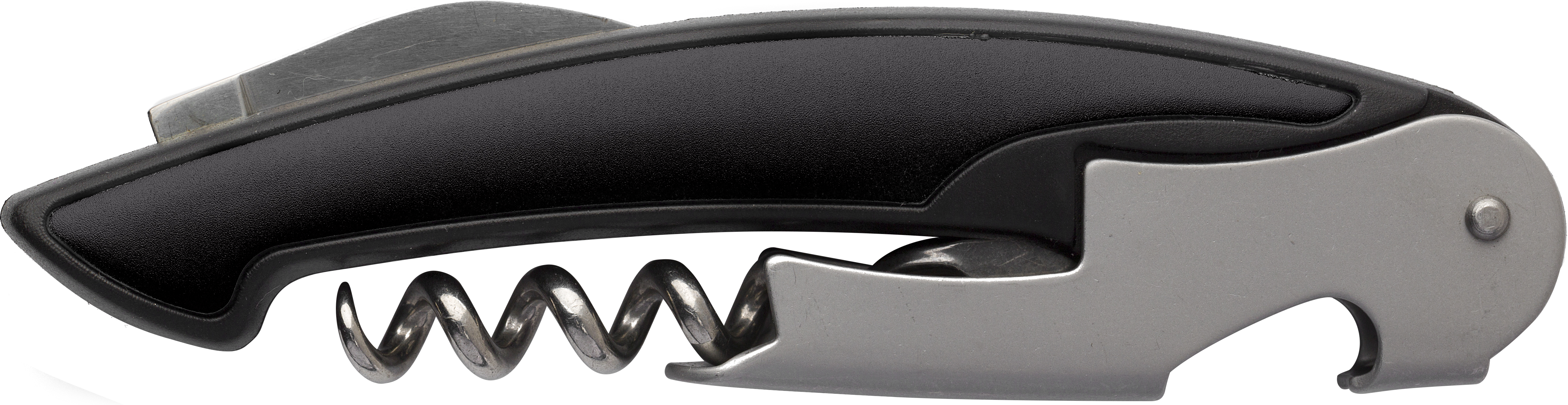 Kellnermesser aus Kunststoff, mit Korkenzieher, Flaschenöffner und Messer.