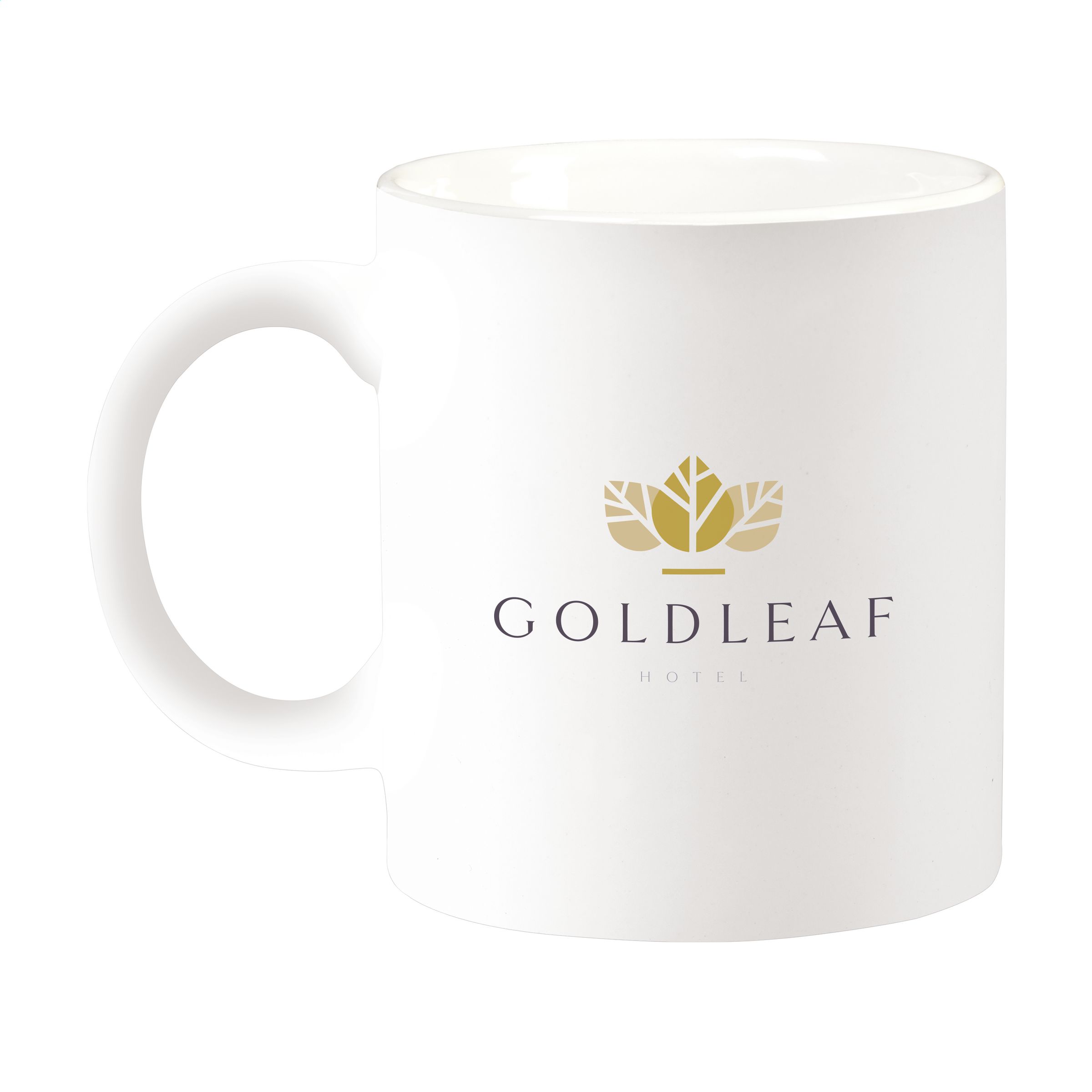 Tasse aus hochwertiger Keramik. Komplett in weiß oder mit farbiger Außenseite. Spülmaschinengeeignet. Der Aufdruck ist spülmaschinengeprüft und nach EN 12875-2 zertifiziert. Fassungsvermögen 350 ml.