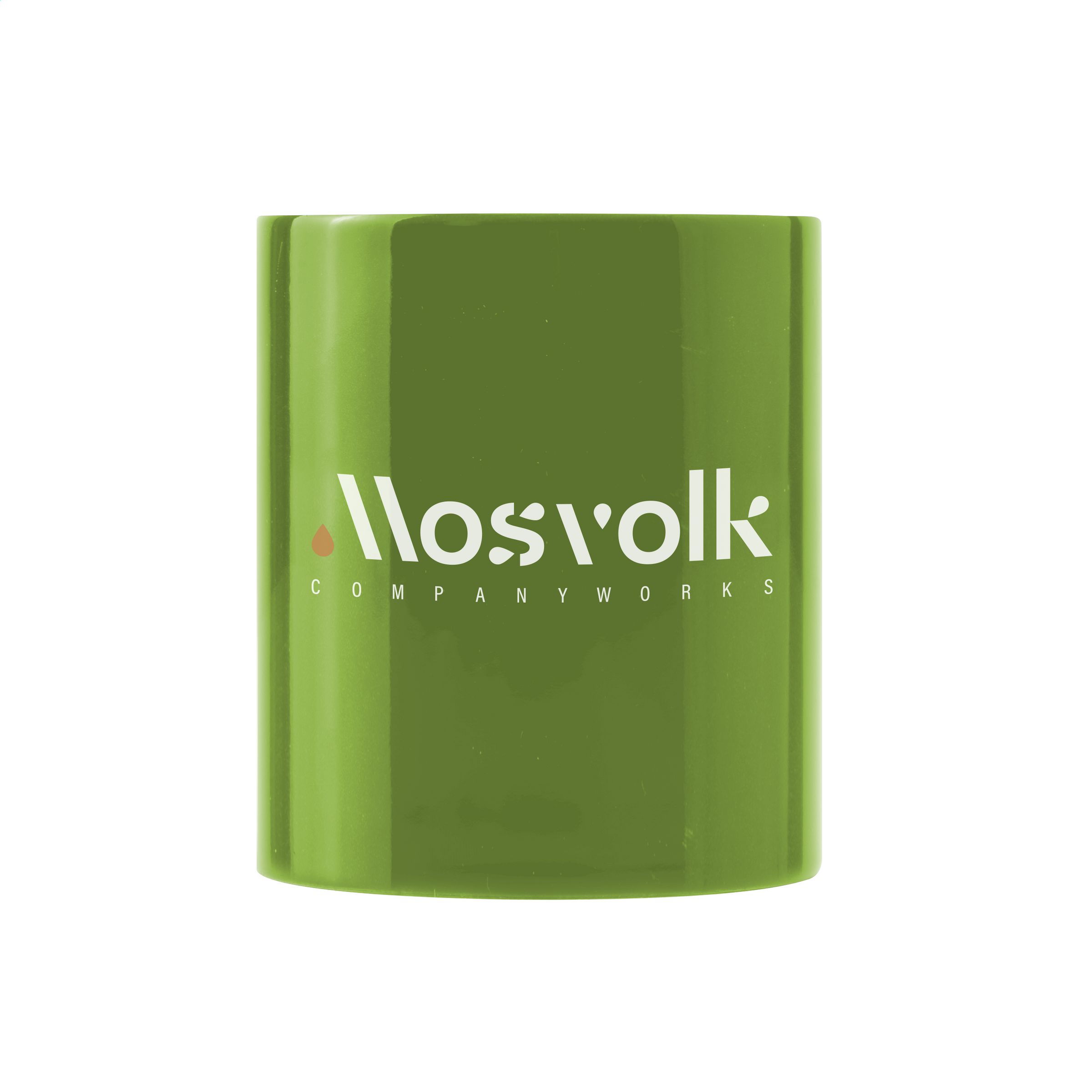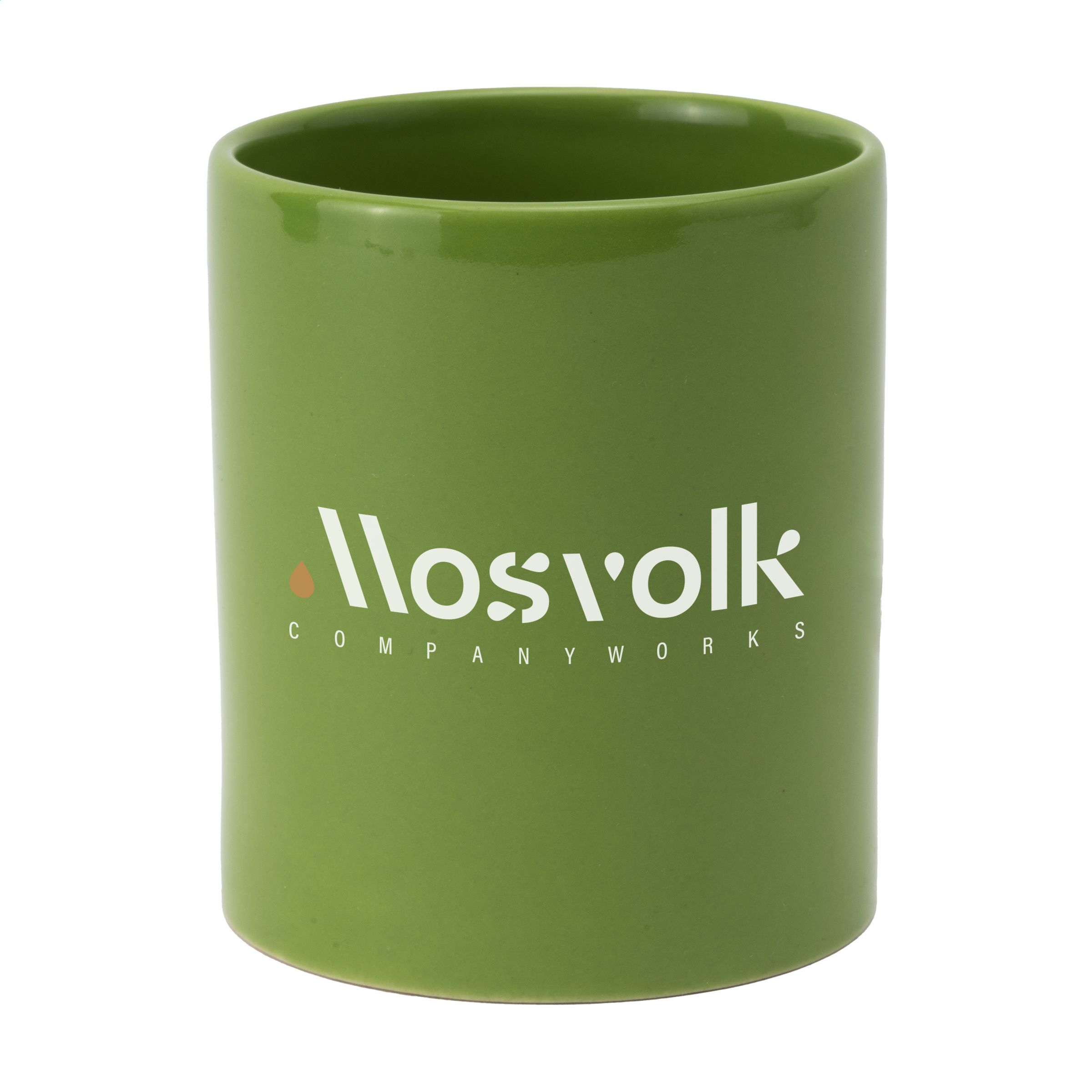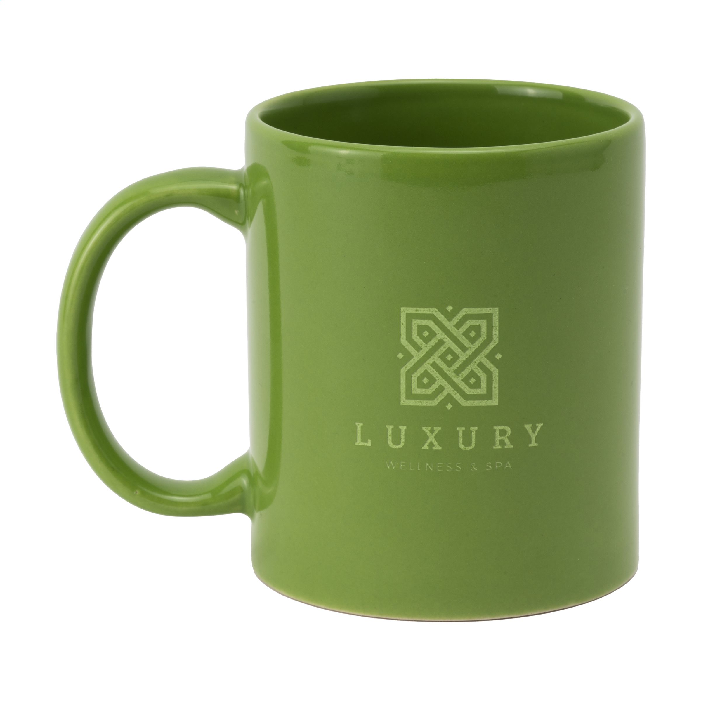 Tasse aus hochwertiger Keramik. Komplett in weiß oder mit farbiger Außenseite. Spülmaschinengeeignet. Der Aufdruck ist spülmaschinengeprüft und nach EN 12875-2 zertifiziert. Fassungsvermögen 350 ml.