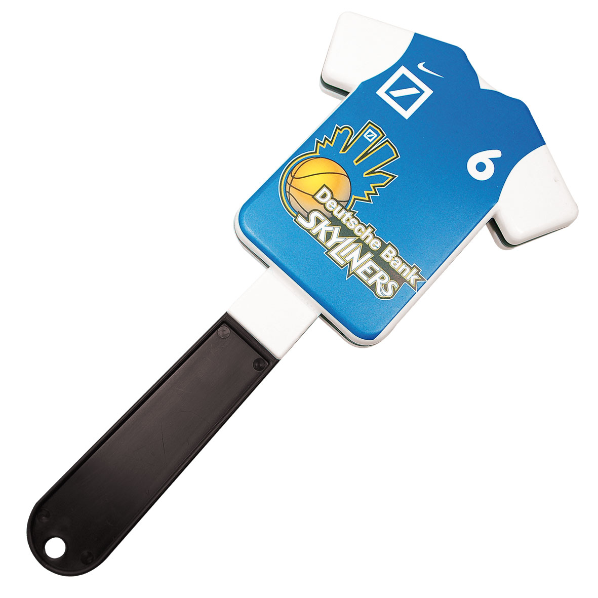 Lautstarke Werbung garantiert diese 3-teilige, große Klapper aus unserer Eigenfertigung. Verschiedene Farbkombinationen und IMould-Veredelung möglich.