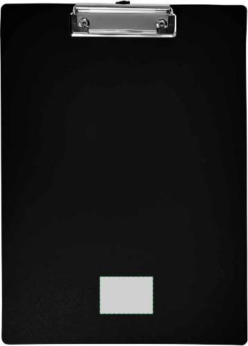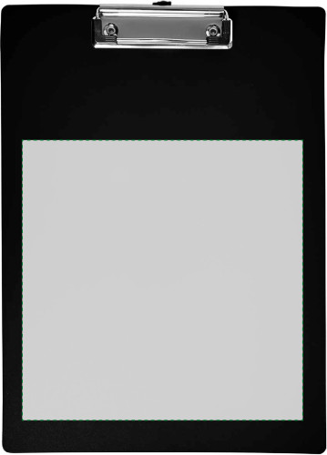 Klemmbrett aus Kunststoff, ca. DIN A4-Format, mit Metall-Klammer.