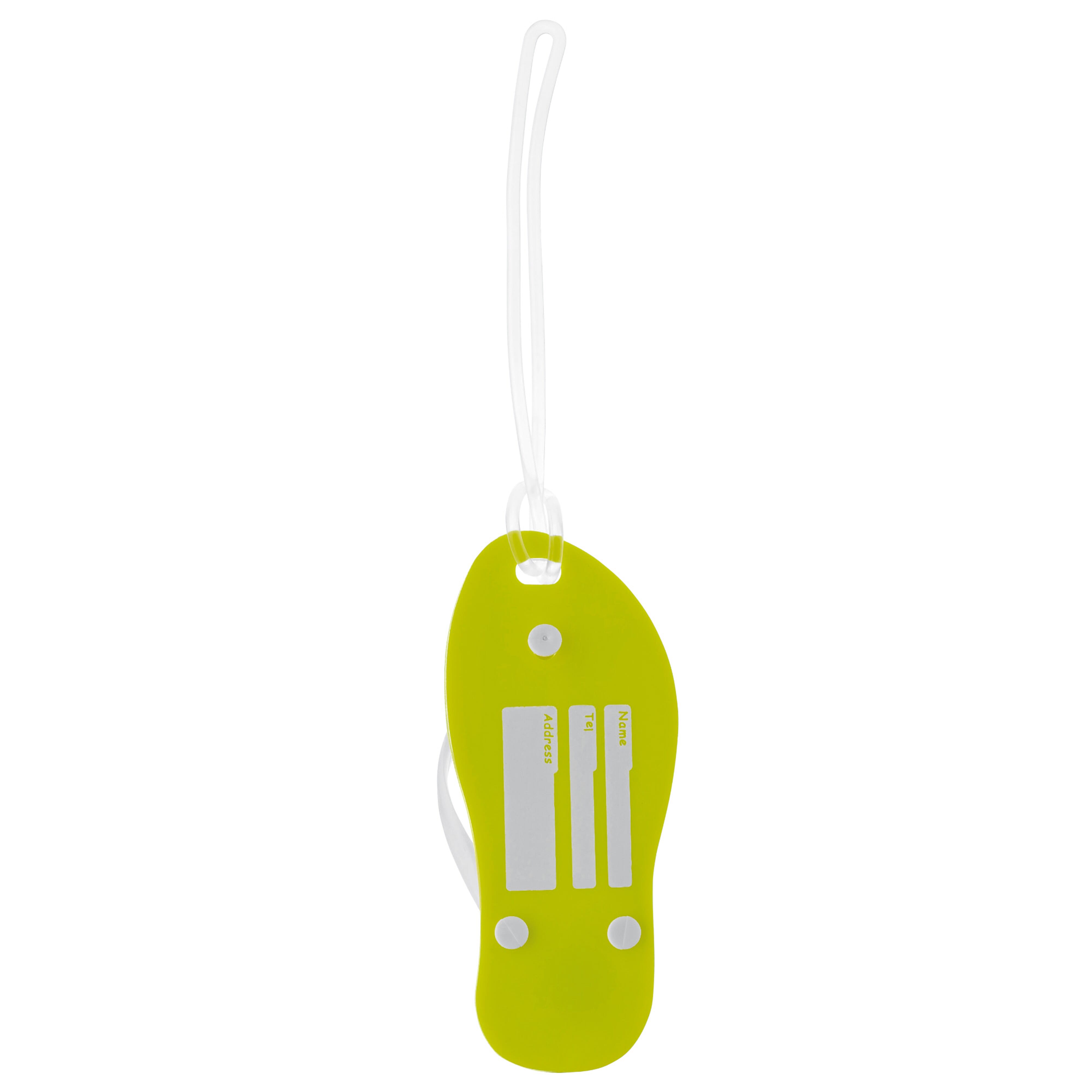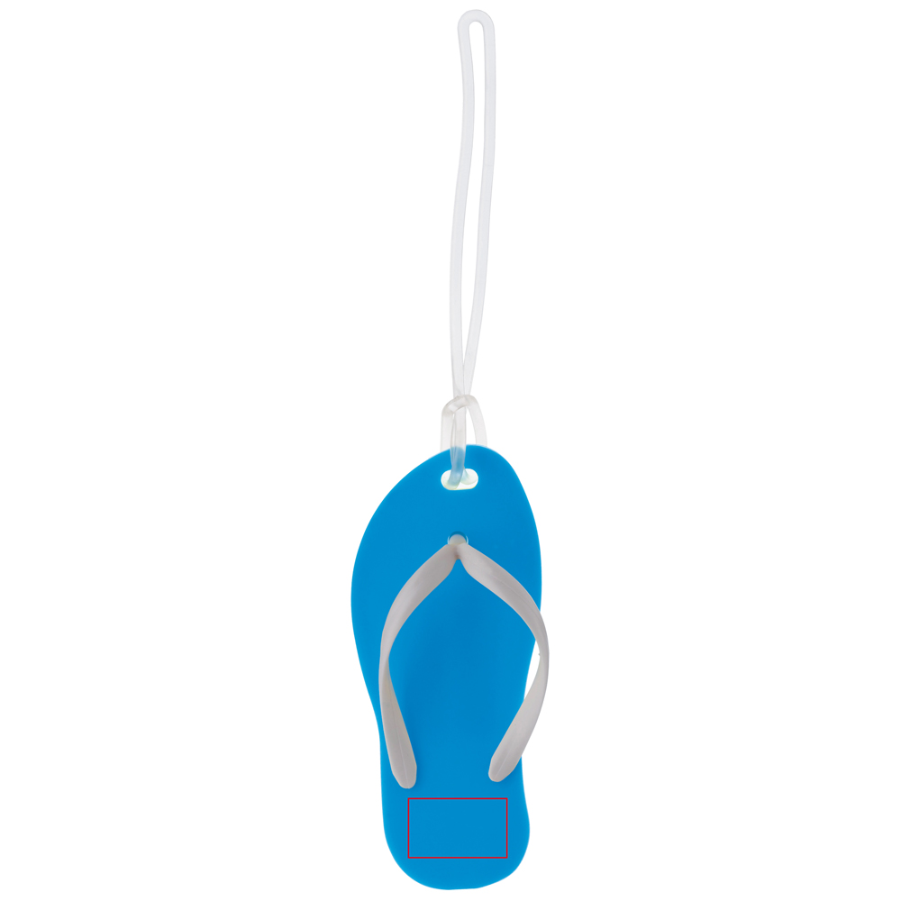 Kofferanhänger in Form eines Slippers. Mit diesem Kofferanhänger beginnt ihr Urlaub bereits zu Hause. Durch diese einzigartige Form erkennen Sie schnell Ihr Gepäck.