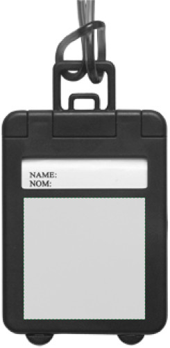 Kofferanhänger aus Kunststoff, mit flexiblem Befestigungsband.