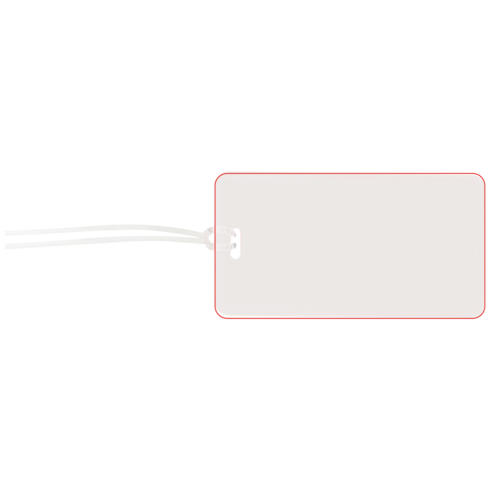 Praktischer Kofferanhänger aus PVC mit einer großen Werbefläche. Im Inneren des Etiketts befindet sich eine herausnehmbare Karte, auf die Sie Ihre Adressdaten schreiben können.