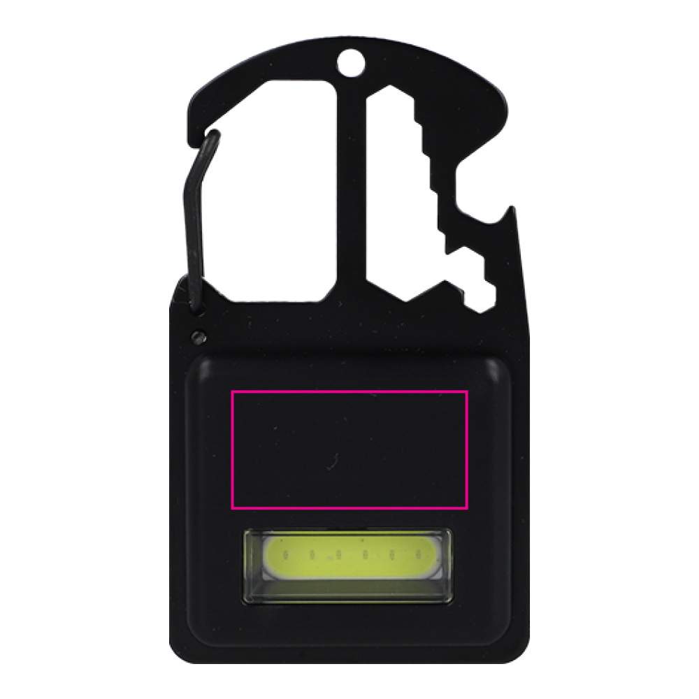 Befestigen Sie dieses handliche, taschengroße, multifunktions Werkzeug an Ihrer Tasche oder Ihrem Gürtel, oder verwenden Sie den Magneten, um es an einer beliebigen magnetischen Fläche für freihändigen Einsatz des Lichts zu befestigen. Dieses Werkzeug enthält fünf zusätzliche Funktionen: Flaschenöffner, Maulschlüssel, COB-Licht, Kreuzschlitzschraubendreher und Flachkopfschraubendreher.