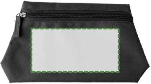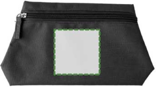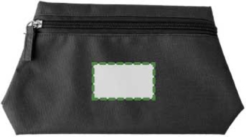Kosmetiktasche aus Polyester (600D), mit Reißverschluss und Zipper mit Zugband in Materialfarbe.