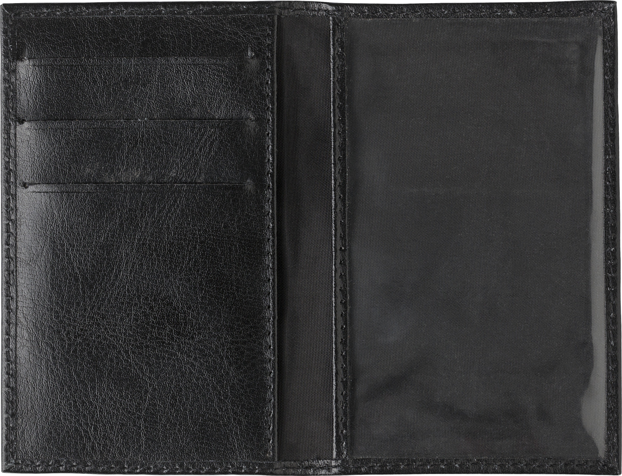Leder (Ziegenleder) RFID (Anti-Skimming) Kreditkarte Brieftasche mit drei Taschen auf der linken Seite und große transparente Fenster auf der rechten Seite.