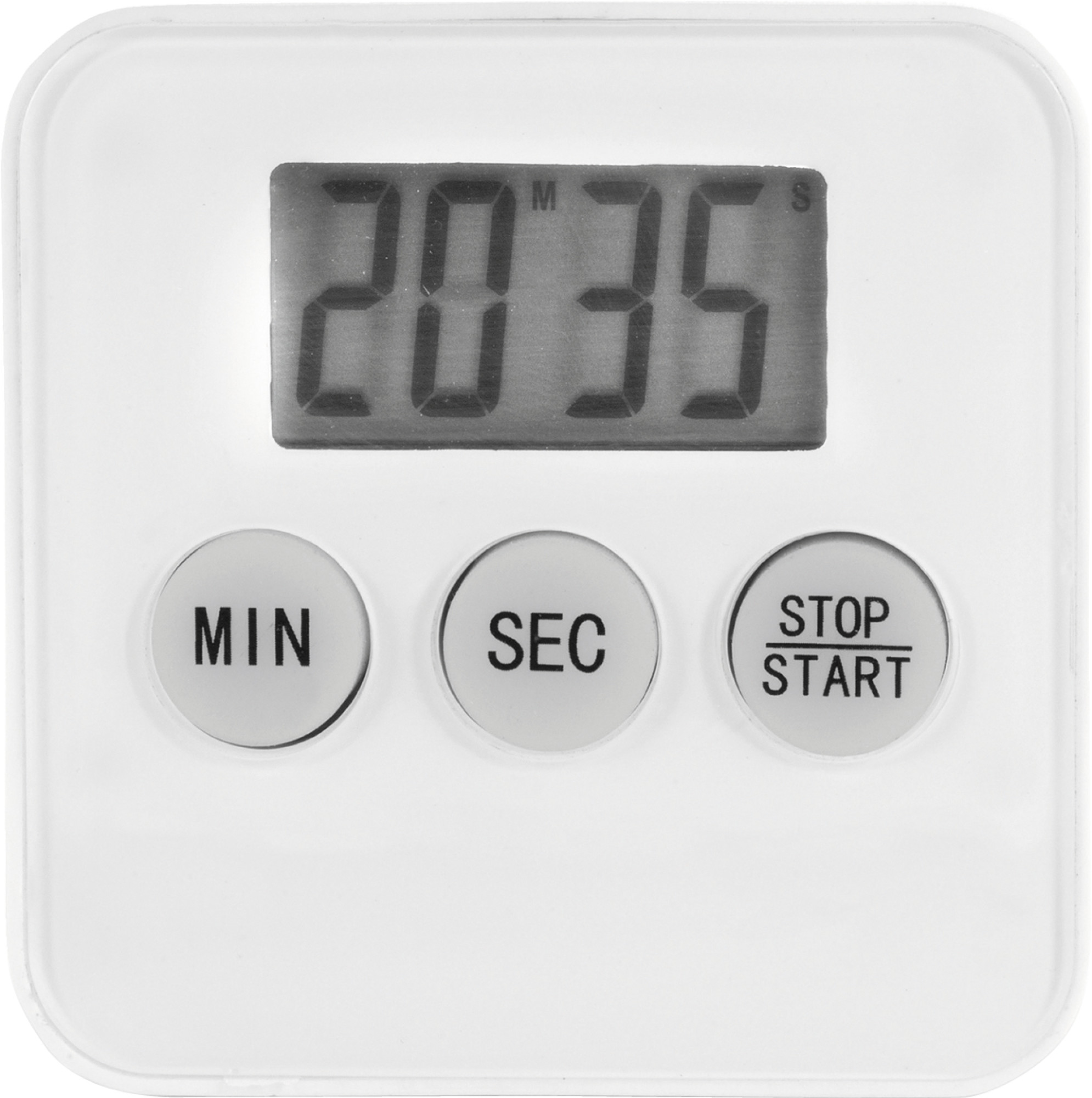 Küchenuhr aus Kunststoff, mit LCD-Display, Magneten und Alarmfunktion.