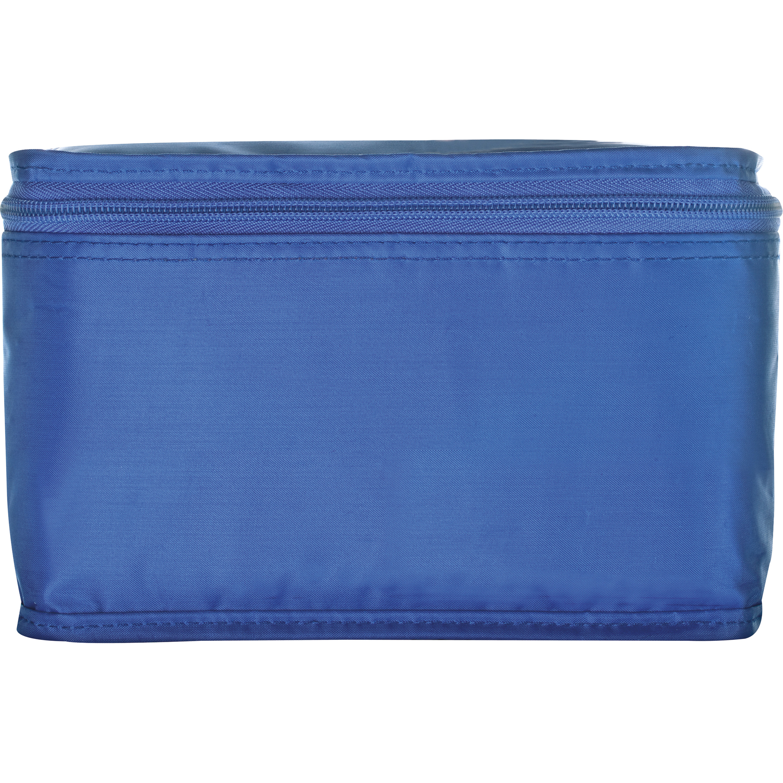 Einfache Kühltasche aus Polyester, passend für 6 Getränkedosen (0,33 Liter) mit Trageschlaufe. Ihre Werbung drucken wir oben auf den Deckel mittig.