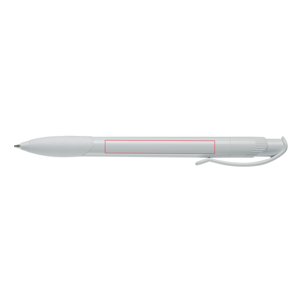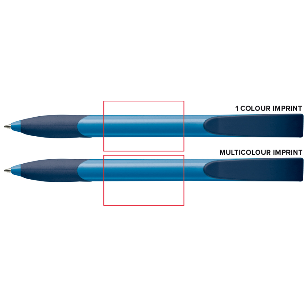 Modern geformter Toppoint Kugelschreiber mit Bogenclip und Gummimanschette. Komplett zusammenstellbar in eigenen Farbkombinationen aus vollfarbigen oder gefrosteten Teilen. Jumbo-Mine mit 4,5km Schreibleistung. Schreibfarbe in blau, rot, schwarz oder grün wählbar. Made in Germany.