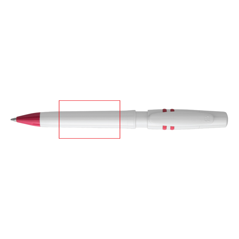 Der Hardcolour Kugelschreiber Nora mit weißem Schaft und weißem Clip. Die Ringe im Drücker sind farbig. Ausgestattet mit einer blau schreibenden Jumbo-Refill-Mine. Der Druckkugelschreiber besteht aus ABS und wird in Europa hergestellt. Ab einer Abnahmemenge von 5.000 Stück sind eigene Farbkombinationen möglich.